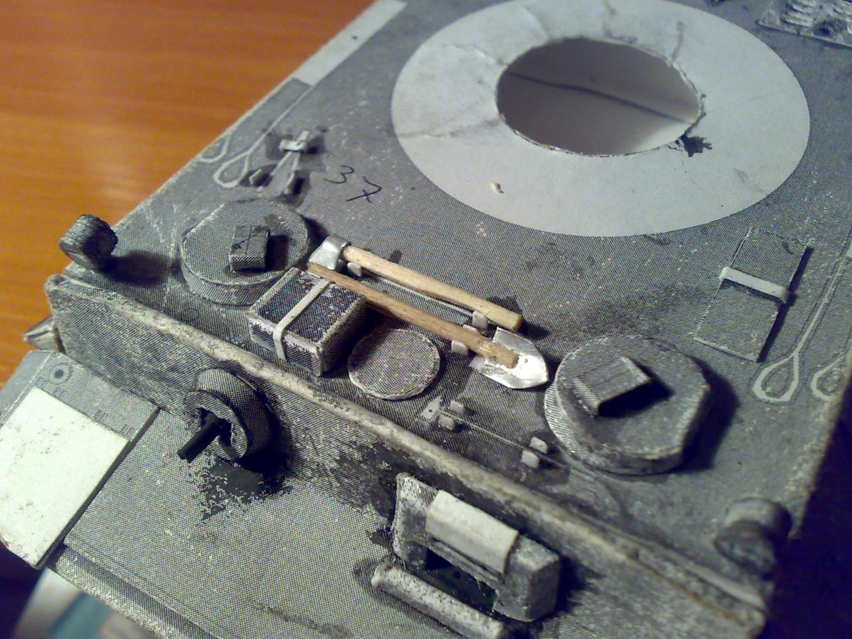 Пришло время инструмента, красующегося на броне. Ну и я, конечно же, не смог оставить это дело без особого внимания . Просто приклеить распечатанные орудия труда на нужные места не вариант. Поэтому, с помощью нехитрых манипуляций, попытался сделать их более реалистичными. А так же, соорудил для каждого из них крепления на танке. Инструмент можно будет достать в любой момент и что-нибудь починить . Само собой, каждый предмет будет покрашен.