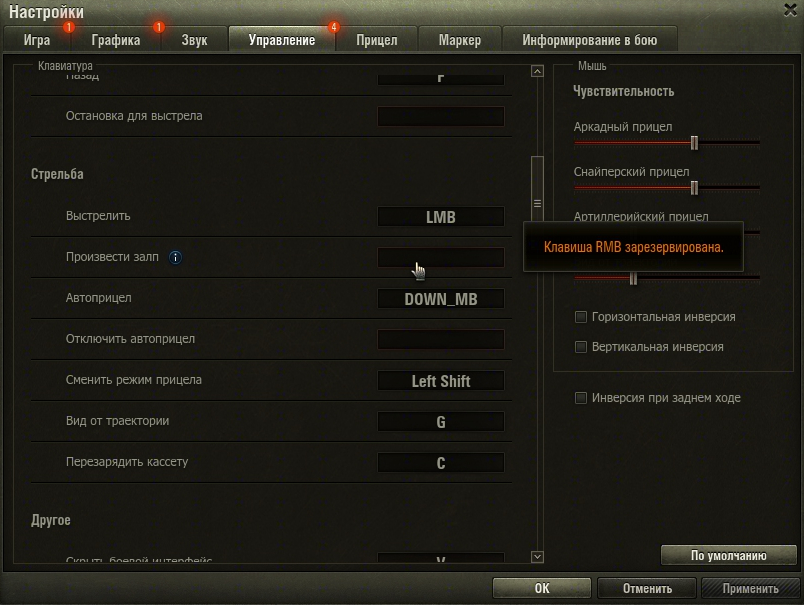http://cdn-frm-eu.wargaming.net/4.5/style_images/wg/snapback.pngZloyBut (12 янв 2021 - 21:14) писал: Не все кнопки мыши можно переназначать. Почему? http://cdn-frm-eu.wargaming.net/4.5/style_images/wg/snapback.pngZloyBut (12 янв 2021 - 21:14) писал: На ПКМ закреплены несколько других важных функций. которые не описаны ни для каких других клавиш/кнопок. Зачем? Чтобы что? http://cdn-frm-eu.wargaming.net/4.5/style_images/wg/snapback.pngZloyBut (12 янв 2021 - 21:14) писал: Назначьте на клавишу. Например Y. Почему я не могу назначить туда, куда мне удобней? В чём смысл?