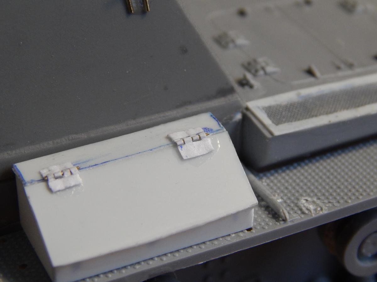 "Доширак" рулит!!! Наверно самый доступный модельный пластик http://cdn-frm-eu.wargaming.net/4.3/style_emoticons/wot/Smile_great.gif С петлями долго думал как быть и пришёл к выводу, что здесь только бумага поможет. Думаю что с решением проблемы петлей угадал. п.з.: в процессе изготовления петель, понял, что ящики ЗиП ( и не только их) можно делать открывающимися, подвижность петли получилась замечательная!!!