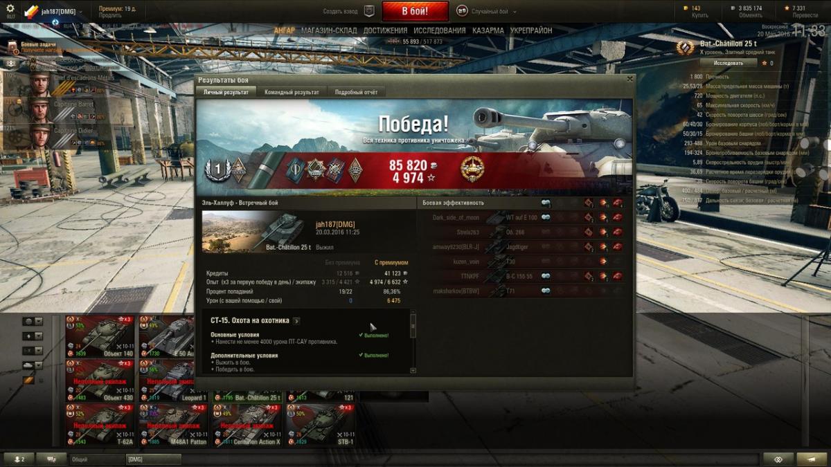 Выполнил все задачи, кроме ПТ-2 и ПТ-15. ПТ-2 может и выполнится пока об.263 в ангар поставлю, а вот ПТ-15 для меня нереально судя по всему, ни разу на ПТ 8к не настреливал. Соклановец помню месяца 3 ПТ-15 делал. Хорошо, что на другой технике все задачи с отличием зашли.