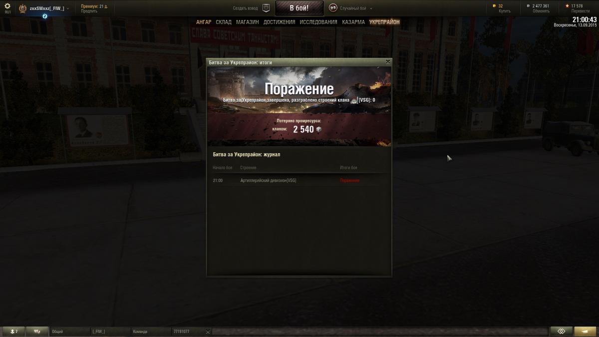 Здравствуйте, на 13.09.2015 Была выставлена атака клана [_FIW_] на клан [VSG] в 21:00 по мск, на атаку не мог зайти ни один игрок из клана (причина на скриншоте shot_055), по истечению времени засчитали поражение и сняли 2540 промресурсов (скриншот shot_054). Прошу предпринять меры!