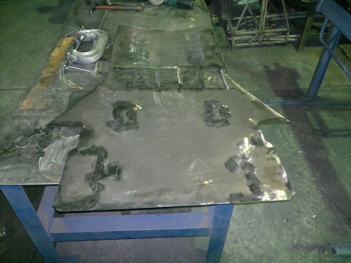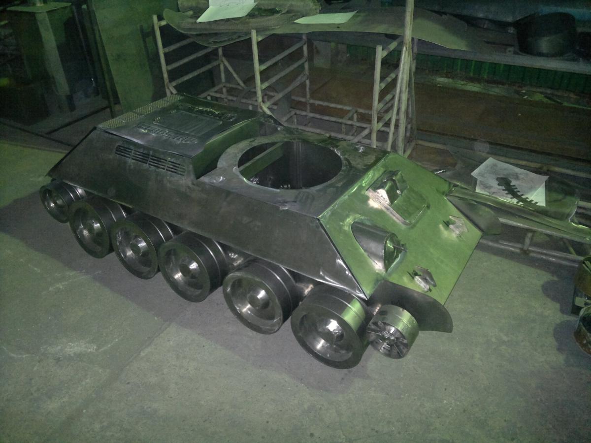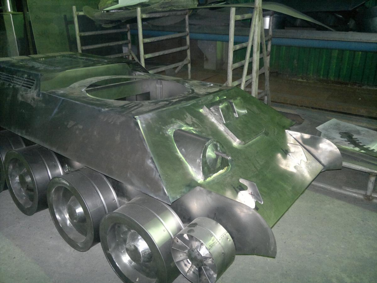 Снова здрасьте. Неделя пролетела как один день. Вот чего я достиг за эти семь дней: Нарезал, загнул, сварил всякую мелочь http://cdn-frm-eu.wargaming.net/wot/ru/uploads/monthly_02_2015/post-8476046-0-34043100-1423924917_thumb.jpghttp://cdn-frm-eu.wargaming.net/wot/ru/uploads/monthly_02_2015/post-8476046-0-48187300-1423924915_thumb.jpghttp://cdn-frm-eu.wargaming.net/wot/ru/uploads/monthly_02_2015/post-8476046-0-17396300-1423924909_thumb.jpghttp://cdn-frm-eu.wargaming.net/wot/ru/uploads/monthly_02_2015/post-8476046-0-61788300-1423924906_thumb.jpg Торсионы закрепил на корпусе и временно прикрутил катки, любопытно же) http://cdn-frm-eu.wargaming.net/wot/ru/uploads/monthly_02_2015/post-8476046-0-64199300-1423924919_thumb.jpghttp://cdn-frm-eu.wargaming.net/wot/ru/uploads/monthly_02_2015/post-8476046-0-33917700-1423924921_thumb.jpghttp://cdn-frm-eu.wargaming.net/wot/ru/uploads/monthly_02_2015/post-8476046-0-41278200-1423924923_thumb.jpghttp://cdn-frm-eu.wargaming.net/wot/ru/uploads/monthly_02_2015/post-8476046-0-66310400-1423924925_thumb.jpg Настал черед верхней части корпуса, фотографировал мало, больше делал, а когда вспоминал было уже поздно. http://cdn-frm-eu.wargaming.net/wot/ru/uploads/monthly_02_2015/post-8476046-0-47528900-1423924931_thumb.jpghttp://cdn-frm-eu.wargaming.net/wot/ru/uploads/monthly_02_2015/post-8476046-0-62720800-1423924933_thumb.jpghttp://cdn-frm-eu.wargaming.net/wot/ru/uploads/monthly_02_2015/post-8476046-0-58061000-1423924935_thumb.jpghttp://cdn-frm-eu.wargaming.net/wot/ru/uploads/monthly_02_2015/post-8476046-0-13216100-1423924938_thumb.jpghttp://cdn-frm-eu.wargaming.net/wot/ru/uploads/monthly_02_2015/post-8476046-0-00169000-1423924940_thumb.jpghttp://cdn-frm-eu.wargaming.net/wot/ru/uploads/monthly_02_2015/post-8476046-0-09521600-1423924942_thumb.jpghttp://cdn-frm-eu.wargaming.net/wot/ru/uploads/monthly_02_2015/post-8476046-0-99358800-1423924943_thumb.jpg (палец на фотке принадлежит Сергею, благодаря которому танк красивее, чем если бы я делал его только своими клешнями, Большое спасибо ему) Вот что в итоге было сделано за неделю http://cdn-frm-eu.wargaming.net/wot/ru/uploads/monthly_02_2015/post-8476046-0-21236200-1423924946_thumb.jpghttp://cdn-frm-eu.wargaming.net/wot/ru/uploads/monthly_02_2015/post-8476046-0-40870800-1423924949_thumb.jpghttp://cdn-frm-eu.wargaming.net/wot/ru/uploads/monthly_02_2015/post-8476046-0-41958600-1423924951_thumb.jpghttp://cdn-frm-eu.wargaming.net/wot/ru/uploads/monthly_02_2015/post-8476046-0-41829900-1423924953_thumb.jpghttp://cdn-frm-eu.wargaming.net/wot/ru/uploads/monthly_02_2015/post-8476046-0-54890200-1423924955_thumb.jpg Не смотрите на щели и не совпадающие углы, это я детали просто в кучу свалил, устал, со вторника займусь сборкой. Вроде копашишься не мало, а на результат посмотришь, там еще работать и работать, Траки нарезал, осталось зачистить и согнуть. Пришел к выводу что башня 1943г не смотрится, попробую сделать от Т-34-85. З.Ы. самая главная новость, танк заметил директор (странно, как он его увидел) ругать не стал, но сказал, что после окончательной сборки заберет его с собой на выставку..