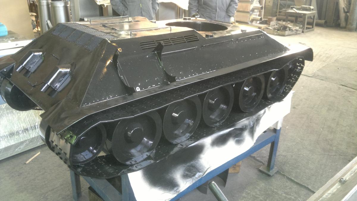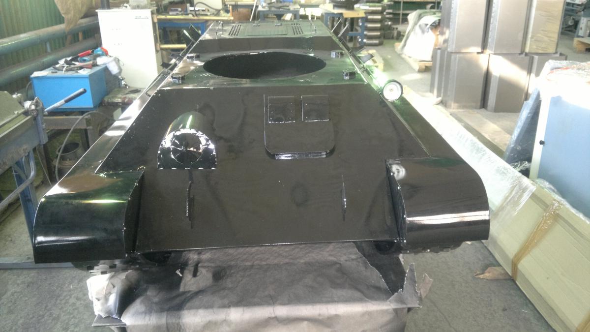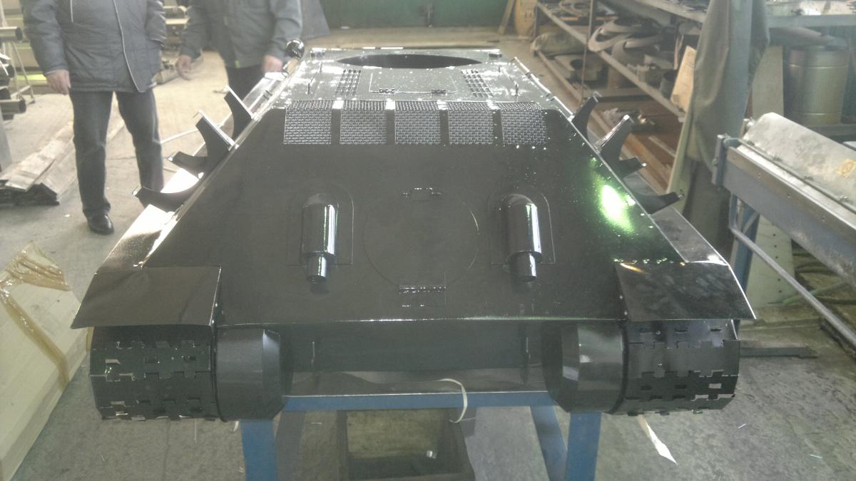 А да, забыл совсем, черный он так как это официальный цвет нашей компании, ну продукция у нас черного цвета. Вот и танк решили сделать черным, я был против, но переубедить не смог. Но ничего страшного, для меня важен только конструктив, в следующий раз цвет точно будет историчным, осталось только найти достойного кандидата))