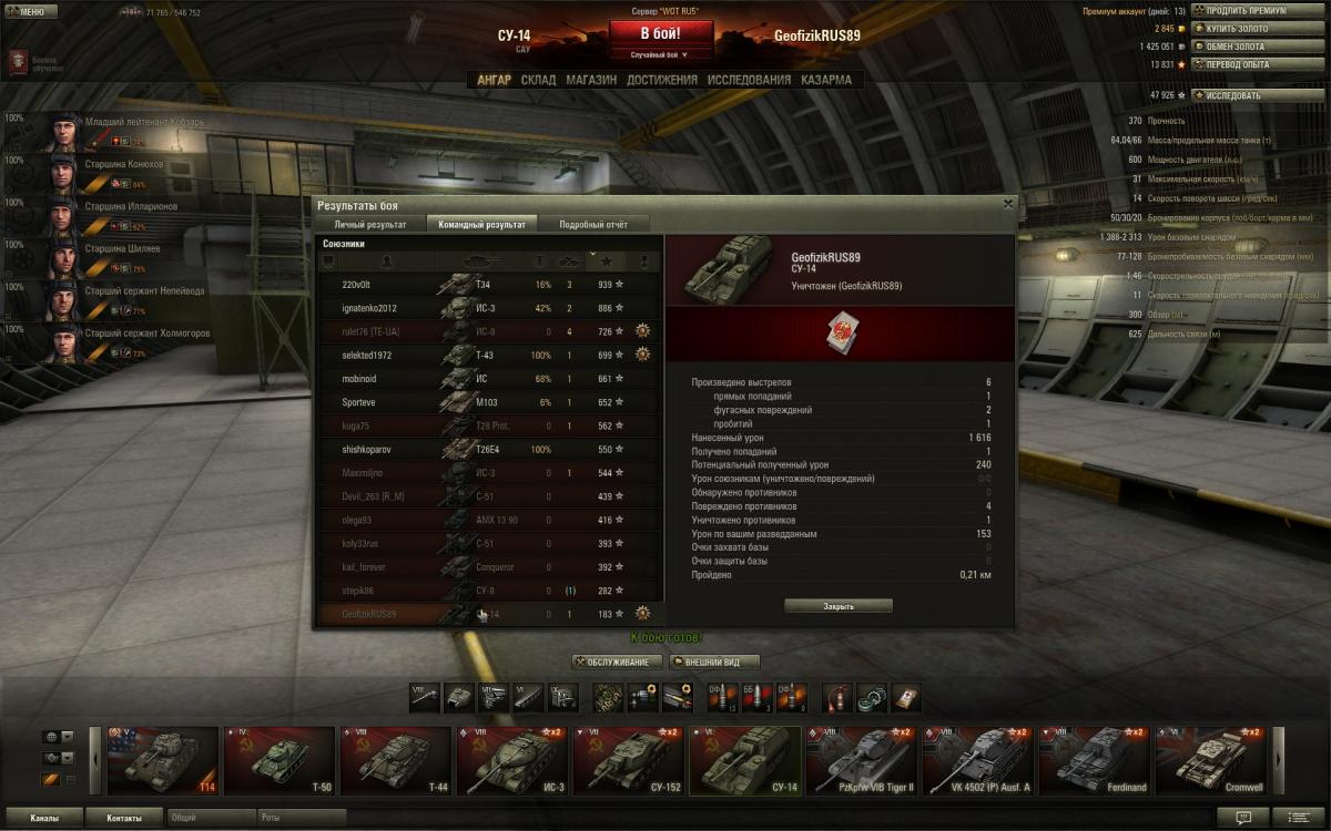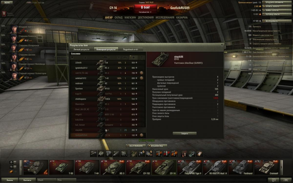 "Вы вышли из боя до его окончания, будучи живым. Это расценивается как дезертирство и наказывается штрафом на заработанные опыт и кредиты + оплата самоуничтожившегося танка. Ответ дан. Закрыто" - Это мне модератор написал. Я всё понимаю, ну недосуг модератору на скрин глянуть, люди занятые всё-же. Поэтому пишу опять: мой СУ-14 был уничтожен в результате тарана, получена медалька "камикадзе", посему я никак не мог выйти из боя, будучи живым. Еще в этом бою я нанес урона больше чем, остальные 3 арты, а оказался по опыту на последнем месте. Может я и вправду ***, может чего-то не понимаю - кто знает ответьте.