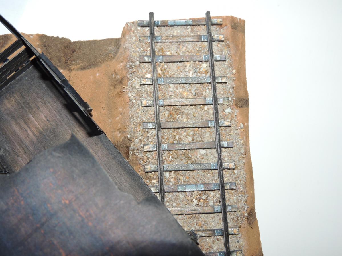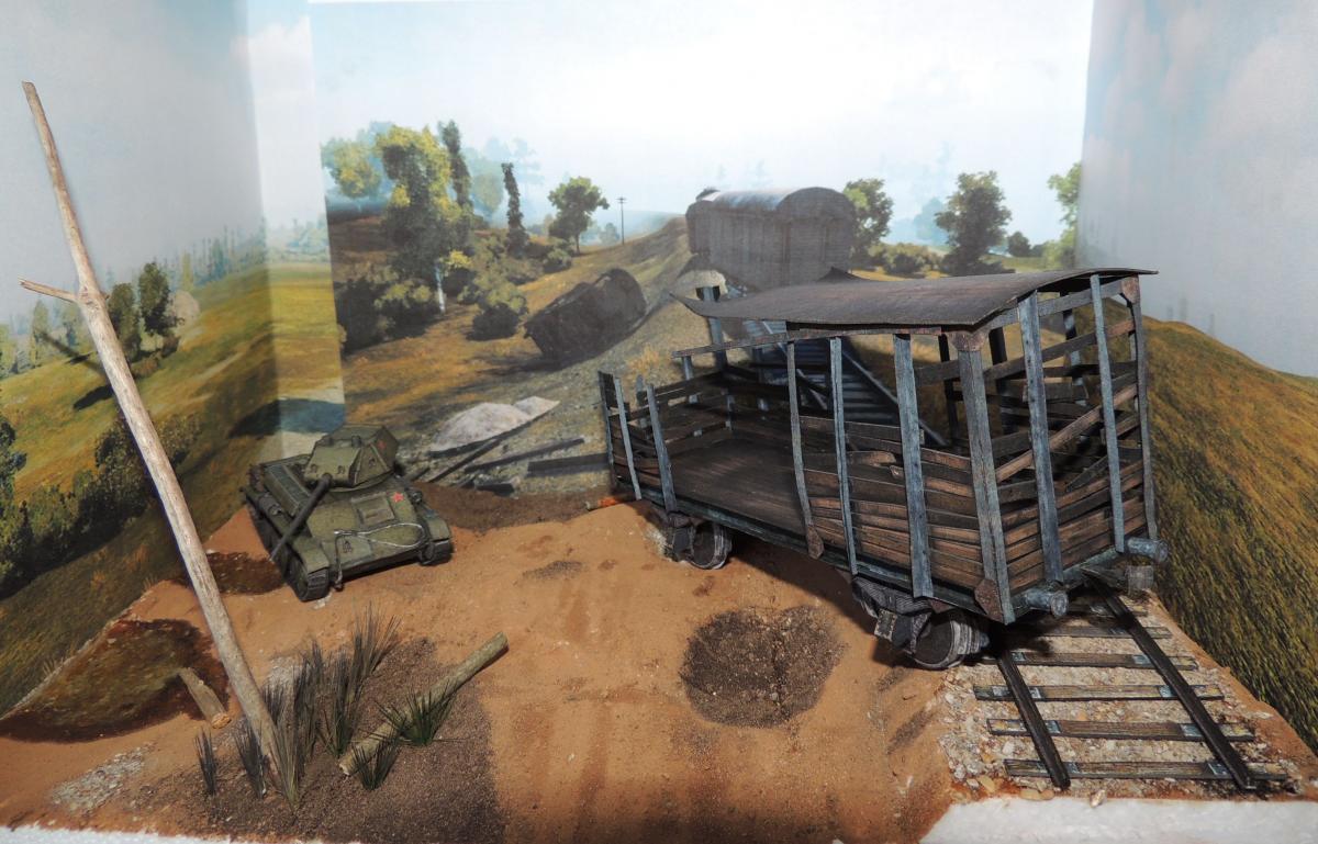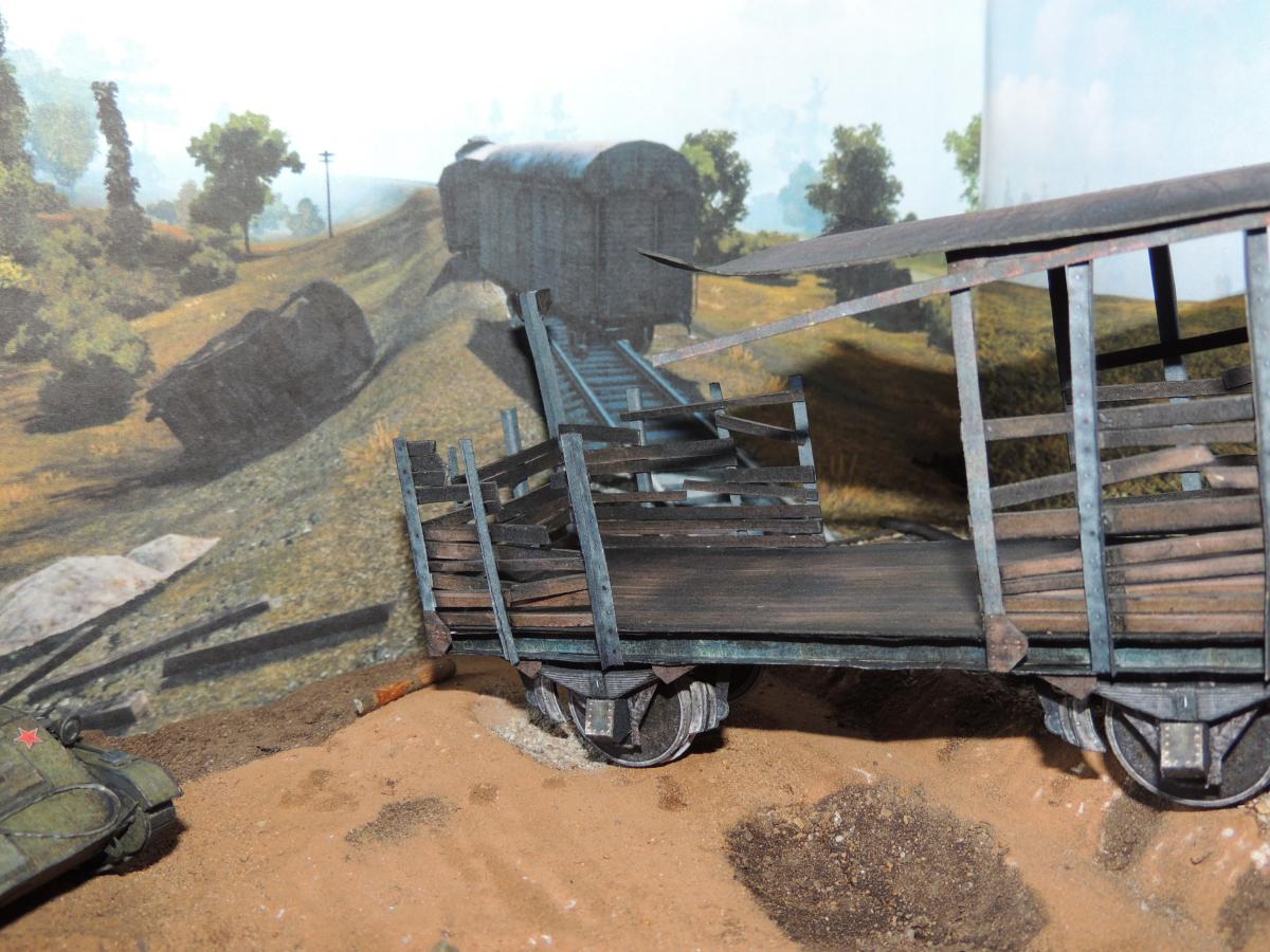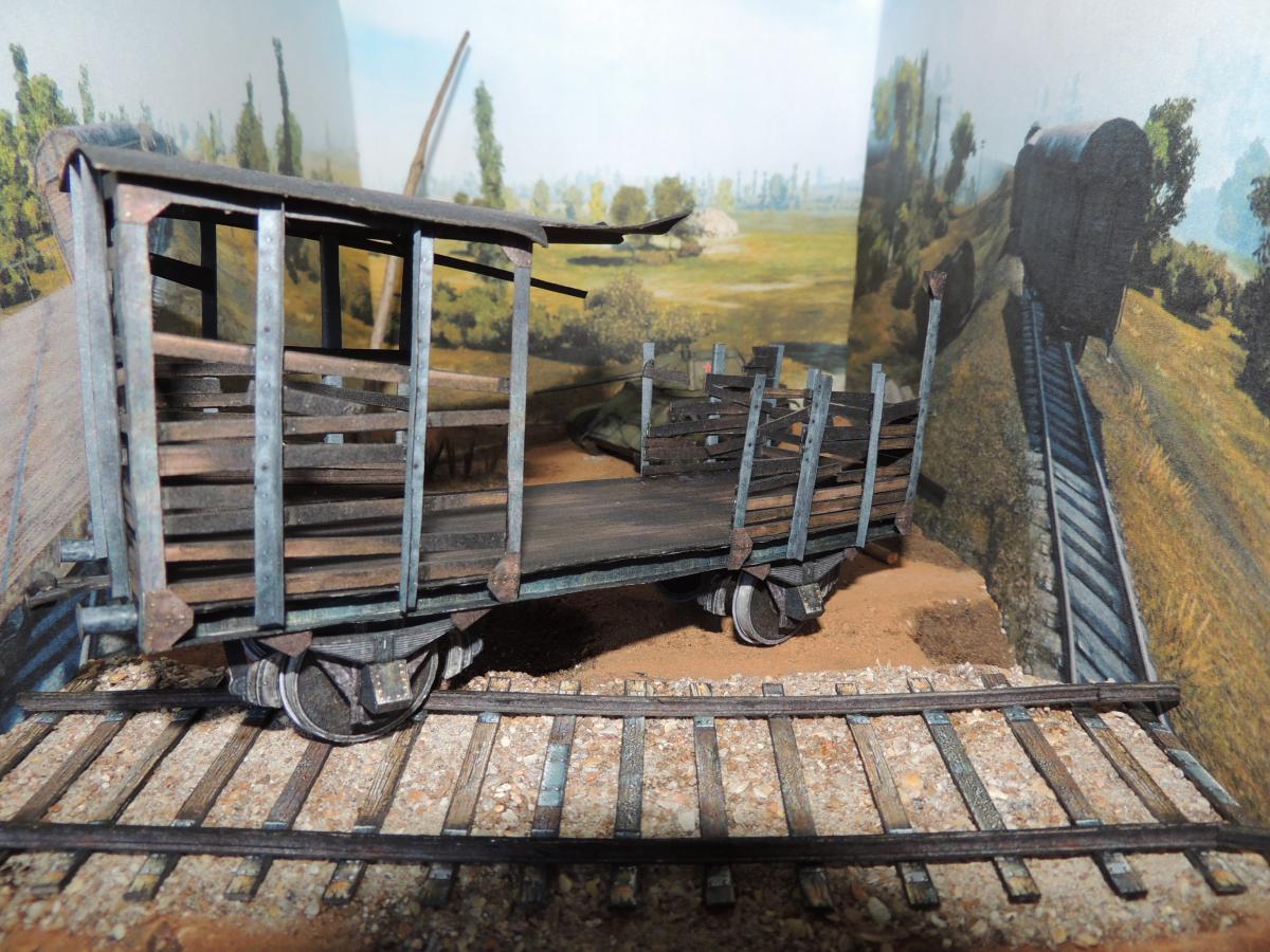 Диорама делится на три части (чтобы места меньше занимала и не пылилась просто так, средняя часть если убрать вагон останется пустая так что пригодится как подставка под следующую модель). Вагон: на вагоне были переделаны стены, нарезаны на отдельные доски, что придало более красивый вид, а времени на это ушло не много.