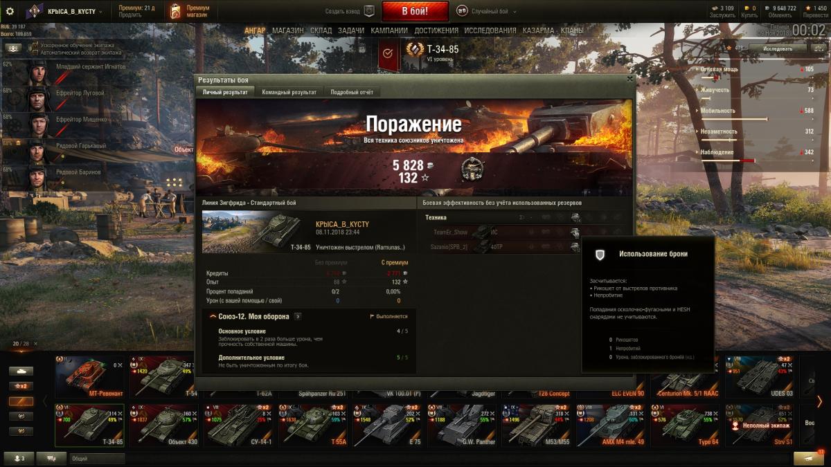 угу значится положение танка тоже самое, на 40ТР снаряд достигает основной брони при попадании в гусеницу, а на ИС магия? - снаряд не достигает основной брони при большем калибре? почему не засчитан рикошет от 40 ТР? тоже не достиг основной брони? как не достиг то? от чего рикошет тогда? экраны на 34 - 85? о_О где они там??? если вы про это "Но и натанковать не натанковал - для этого тоже условия нужно соблюсти - отбить нужно броней, а не гуслей" - то какого засчитывается заблокированный урон при сбитии гусли 40ТР? получается от 40ТР экраны не работают от слова совсем? а против ИСа сразу избирательно включаются?