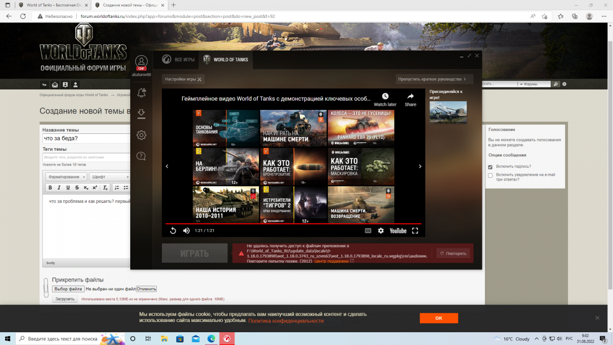a topic добавил abaturov80 в Технические вопросы