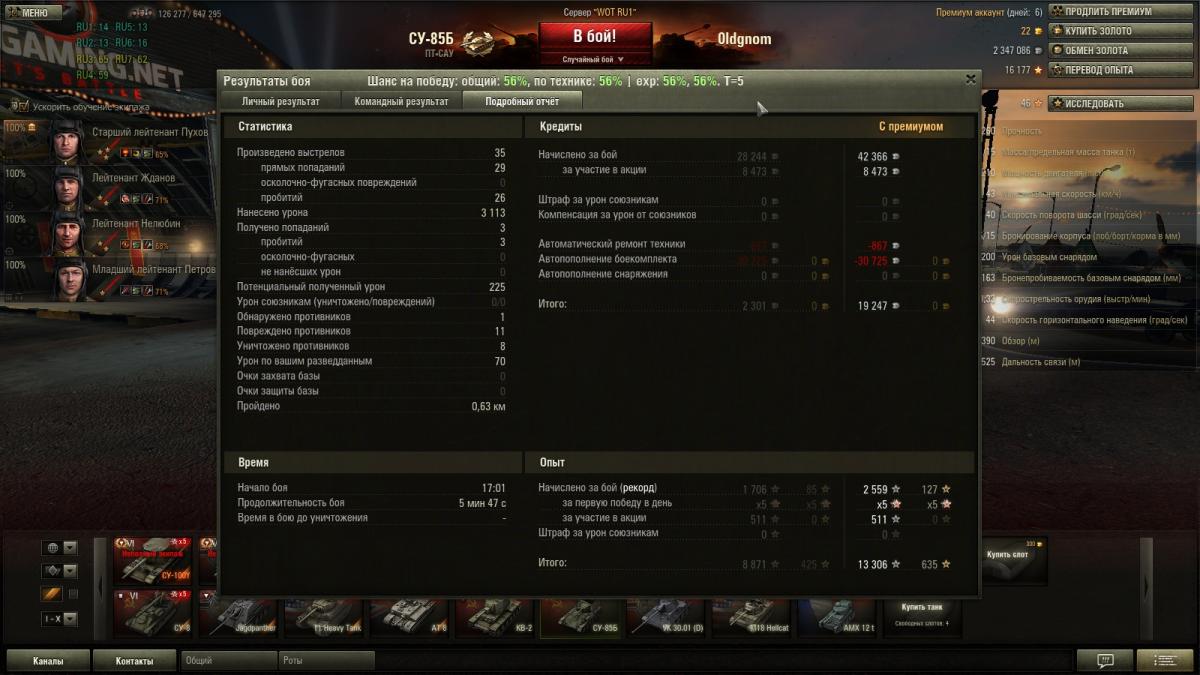 Провел 1к боев на вк3601. По точности не многим выигрывает у игрека. До этого взял дикера. На нем использовал технику засвета ВК-хи. Стал еще чаще получаль матерные послания от слепых квасов и т150. Вчера купил игорька. Что там про его точность? Возьмите КВ2 или кваса. Вот там действительно "точная" пушка. А на игорьке снаряд частенько со 150-200 метров ложится в комбашенку ат-2/8. Если на ВКхе надо лупануть раз 6-8 по ат-хе, то игорьку достаточно одного снаряда,потом его забирают фрагодрочеры. Пушка на Игорьке ОЧЕНЬ высоко. С чего тоже можно делать плюсы: 60 тонн посволяют без проблем ворочать трупы. Если есть возможность. На подьеме ставим труп союзника. Заезжаем лупим из-за его тельца и спускаемся по склону для перезарядки. Если пробили, то даже скорострел черчиль решит отступить. Из других плюсов: огромное бронепробитие по 8м левлам. Если кто там говорит про то, что плохо пробивает, попробуйте на вк3601 с кониом в лоб пробиль суперперша или т34. На вк у меня это получается на 2-3 снаряда из 10, да и с такой альфой они даже не обратят внимание. А су100у в данном случае частенько пробивает. ЗЫ: Лично мое мнение, что на су100у надо садится после того, как начнет тошнить от ст и лт(но при этом на них будет хороший процент побед). Те, кто привык к высокой альфе и толстой броне, вам не сюда. На су100У надо ценить кусты, камни и неровности ланшафта.