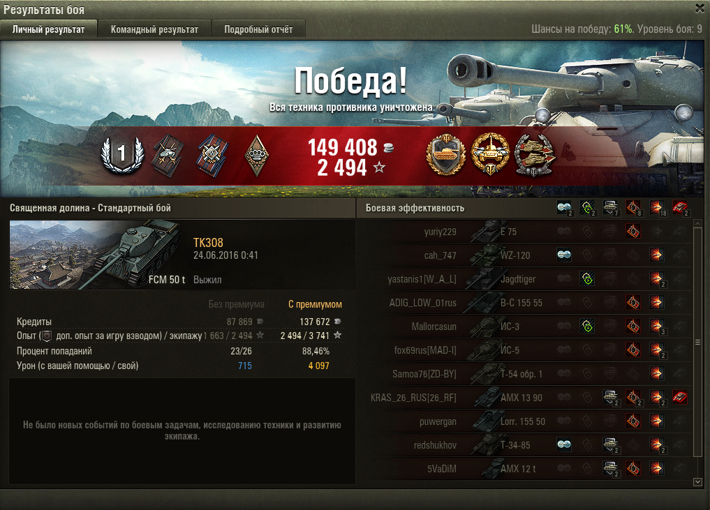Спасибо! Мне риплеи как учебники. Поэтому всегда прошу их на новом танке. Сейчас благодаря "Новогодней битве" прокачал экипажу 2 перка, а то играл без лампы 13 боёв - стрёмно.