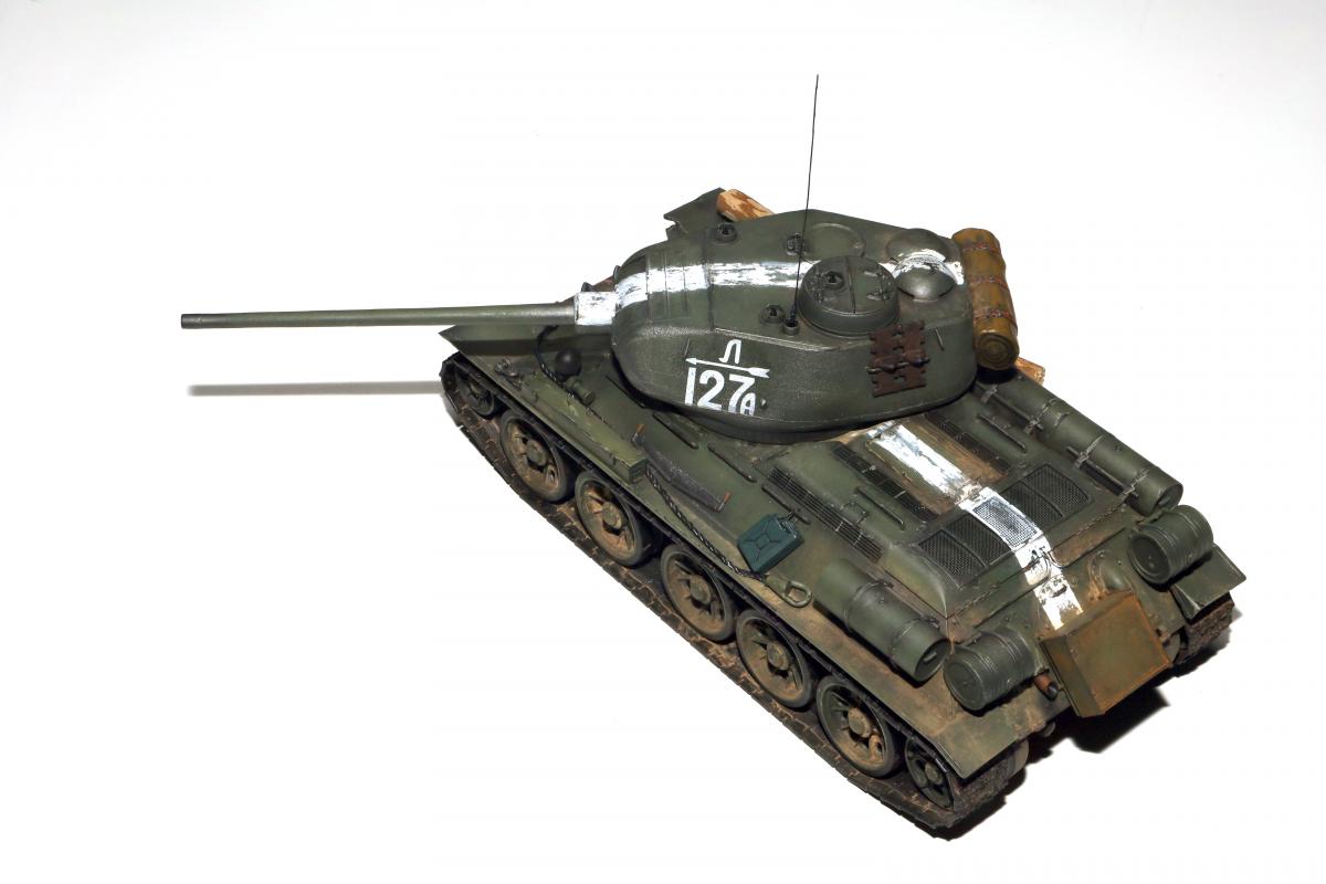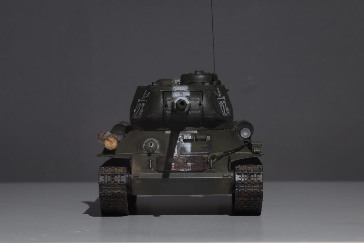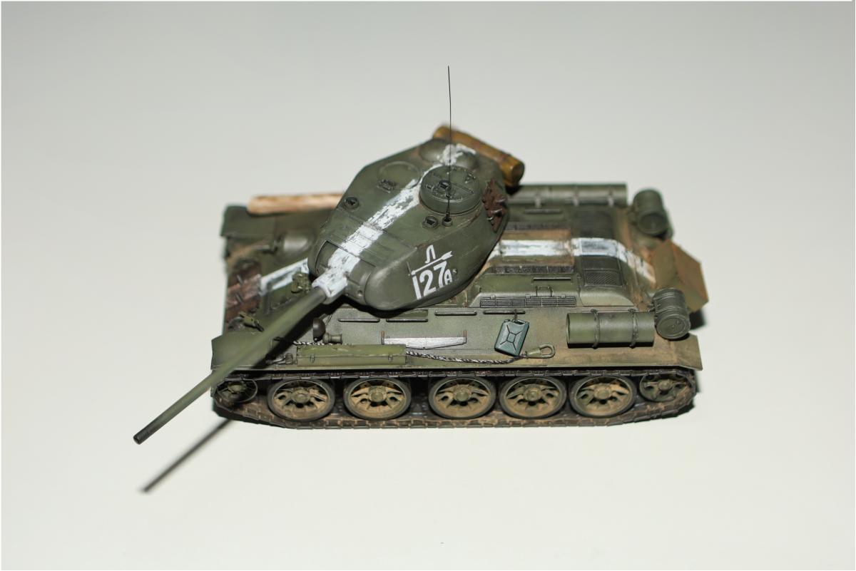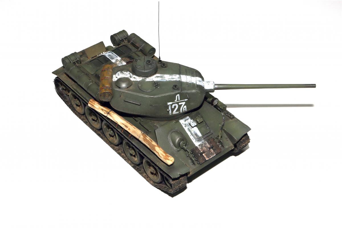 Здравствуйте. Закончил очередную модель танка, просмотрел форум и понял что в этом месяце можно делать конкурс только моделям легендарной Т-34-ке. Вот и я решил выложить свой вариант этой машины. За основу был взят второй вариант декалей, предлагаемый фирмой Звезда (фото прототипа выложу в конце). Модель собиралась без допов (кроме бревна и троса) как есть из коробки. Краски фирмы Звезда. Приятного просмотра и еще раз с 75-ой годовщиной победы!