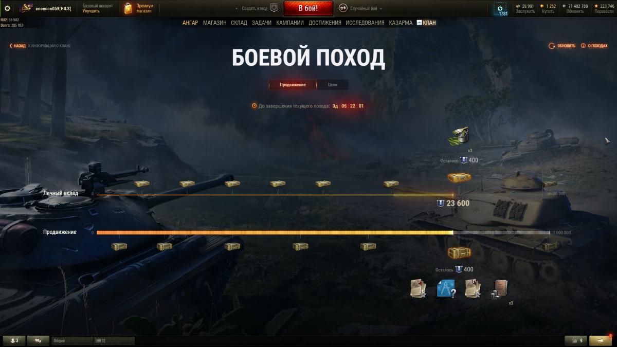 Доброго дня, Всех с наступающим. Даже не знаю на сколько безопасно выкладывать скрины, но я рискну. Вопрос. Шкала боевого похода застыла, хотя надпись гласит что боевой поход завершен. Наград за финал тоже не получено. Я не писатель, но надеюсь изложил понятно. З.Ы скрина прилагаю. З.ы.ы загружал с модами, и без.