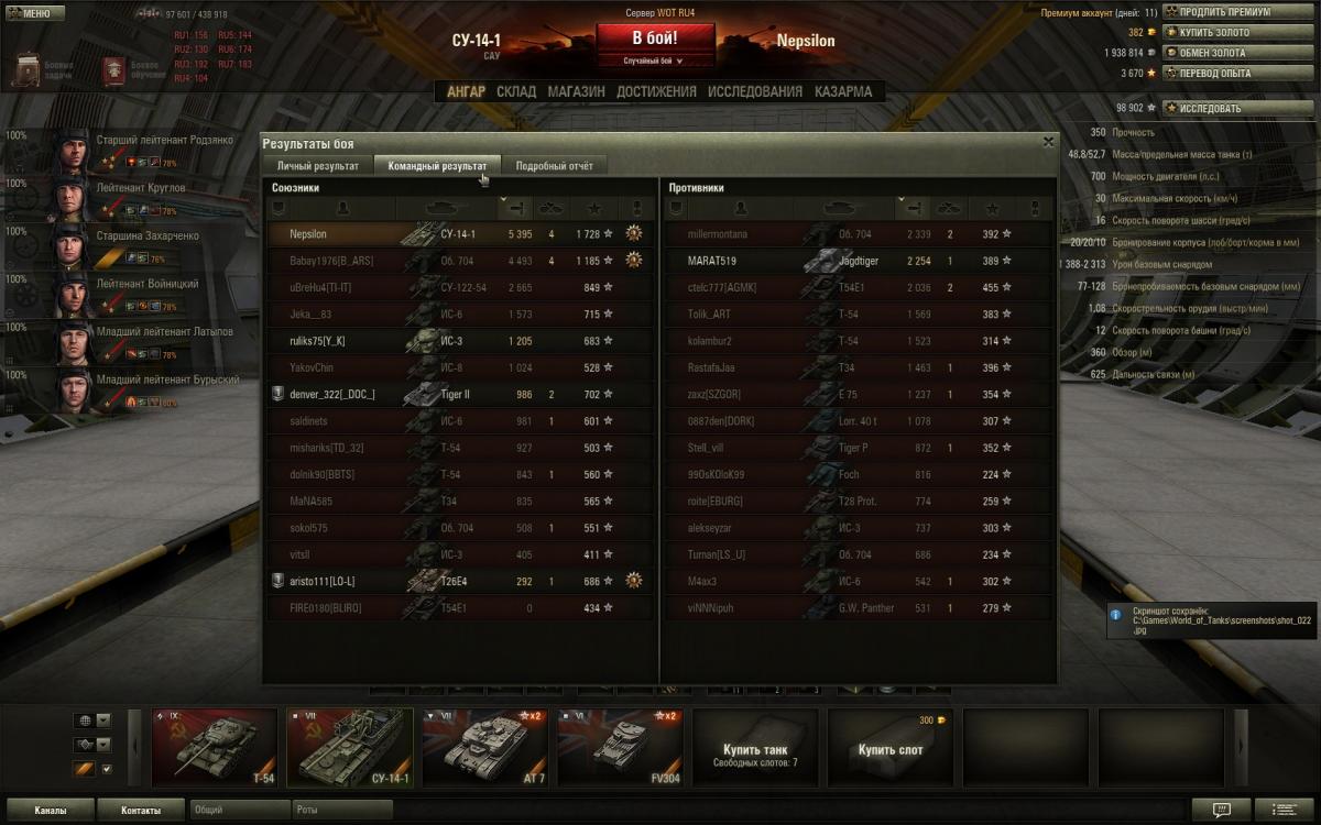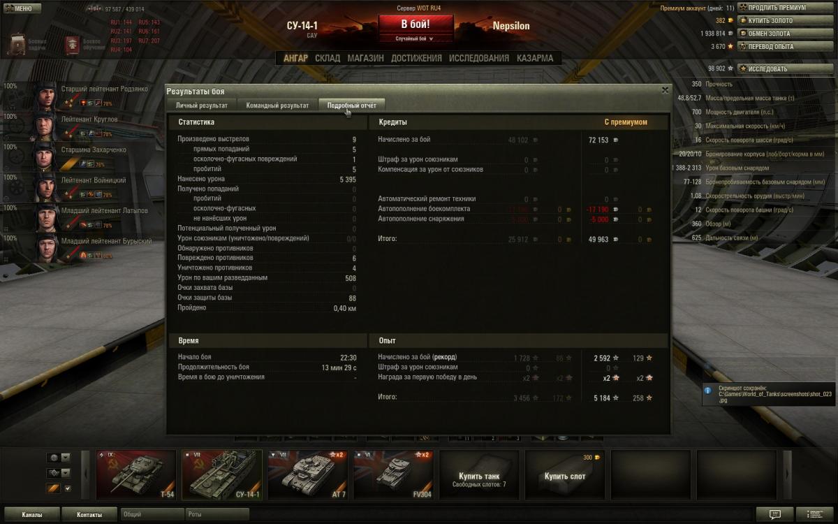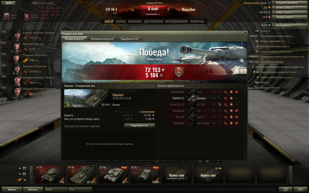 Рекорд по опыту при победе. Победа!Лайв Окс 21 февраля 2013 г. 11:47:32Centurion Mk. I Получено: 5 432 ( x2) 71 634: Медаль Пула, «Воин», «Бронебойщик», Знак класcности «Мастер»