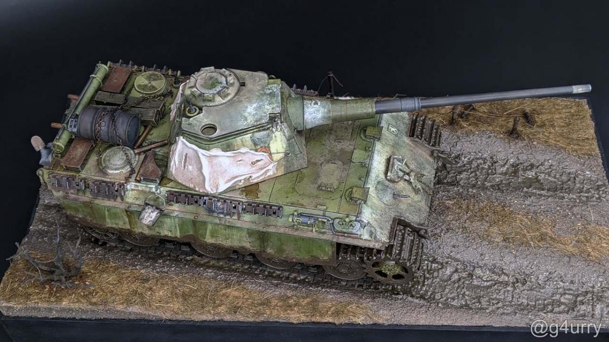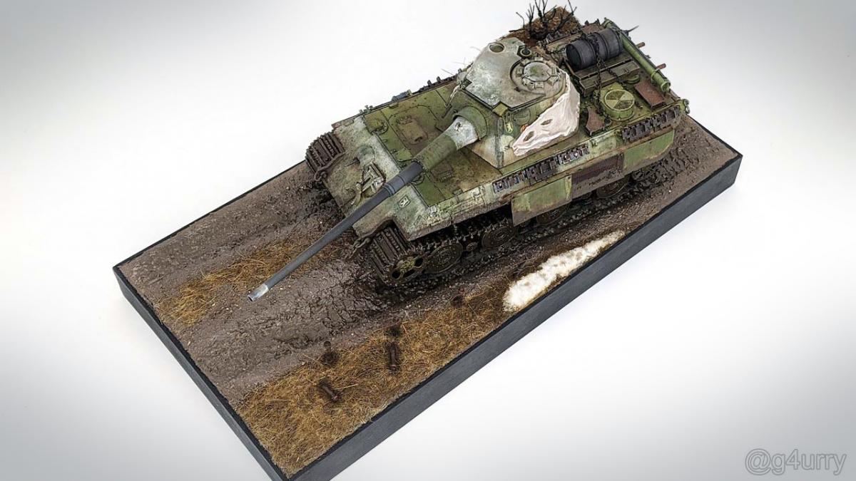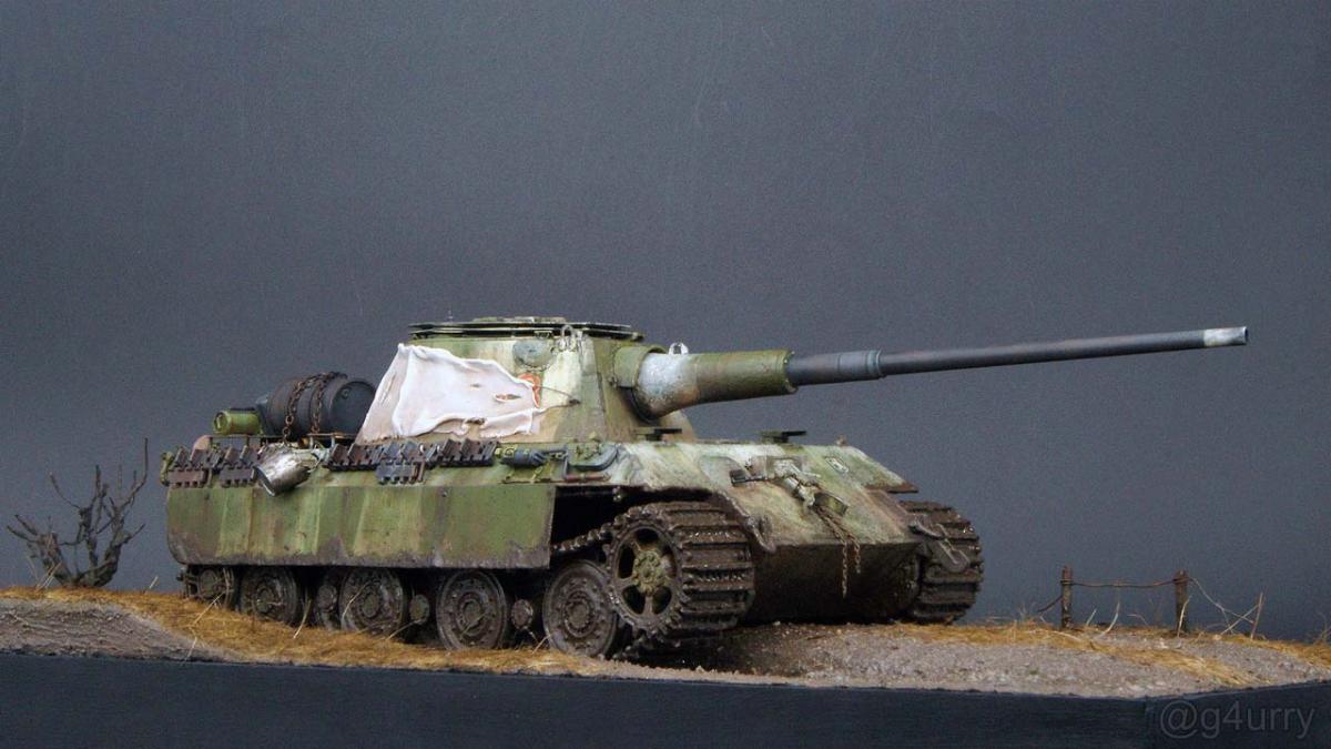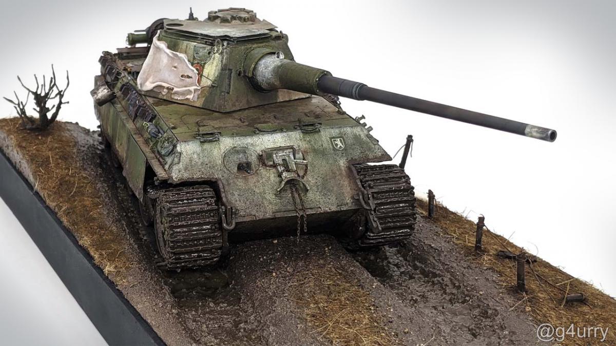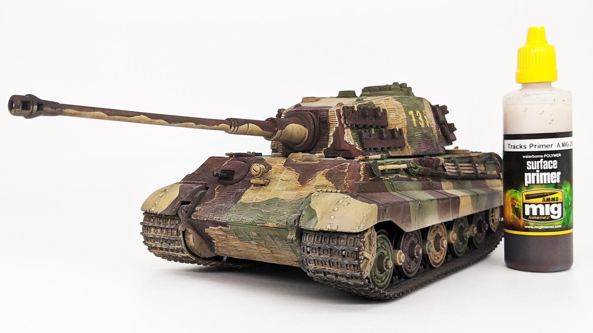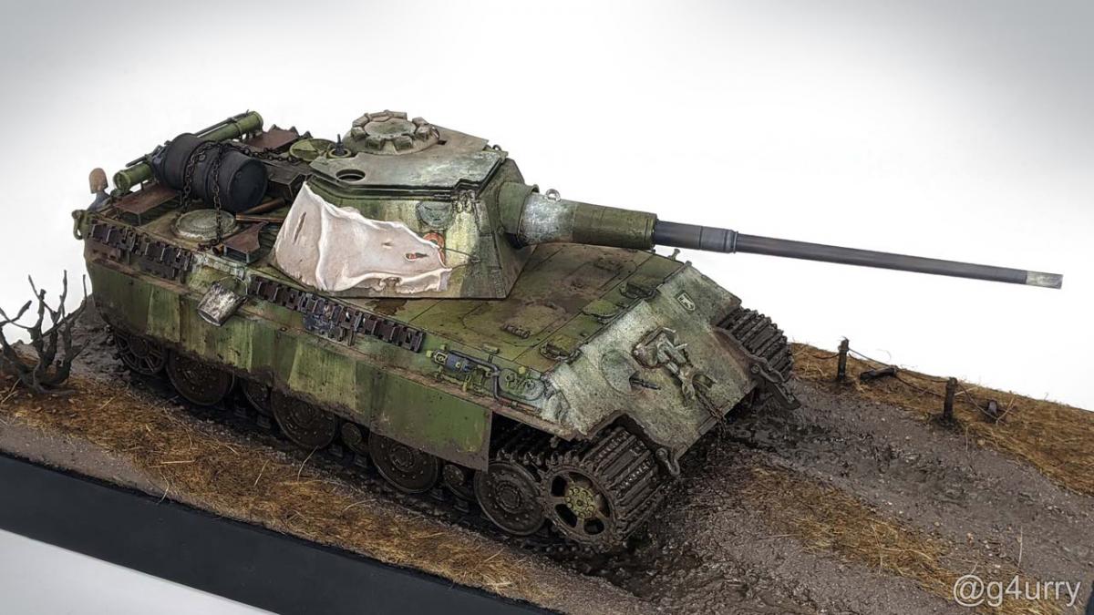 Перекрасил diecast игрушку Тигра II от Unimax. Неплохая для игрушки деталировка была испорчена фабричной покраской и мозолила мне глаза. Поэтому совместил приятное с полезным - успокоил нервы более симпатичным видом модельки и потренировался в покраске и тонировке циммерита.
