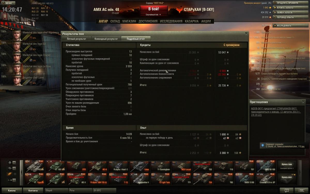 согласно условию боевой задачи Боевая задача №1 Цель: игрок проигравшей команды должен занять первое место среди союзников по количеству опыта, набранного за бой. При этом количество опыта должно быть равным или превышать: 170 единиц — для танков 1–3-го уровней. 350 единиц — для танков 4–6-го уровней. 460 единиц — для танков 7–8-го уровней. 500 единиц — для танков 9–10-го уровней. Награда: + 50% к опыту и кредитам, заработанным за бой. Сроки выполнения: задача может выполняться неограниченное количество раз. Важно: условия задачи действуют только в случайных боях. Боевая задача была выполнена. Где мои 50% опыта и кредитов. Если акция еще не работает - объявите об этом. Когда она заработает? Скриншоты прилагаю