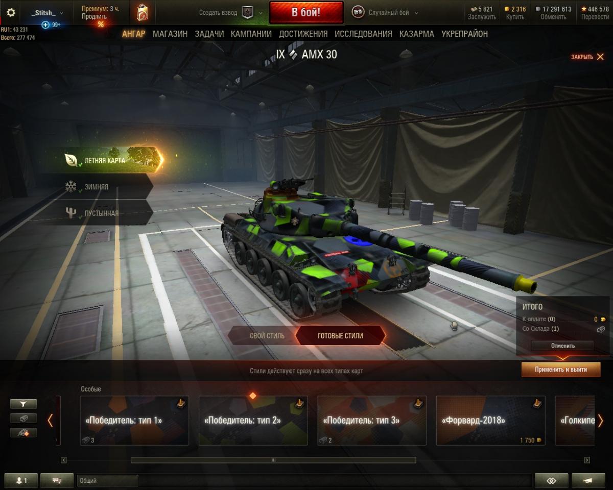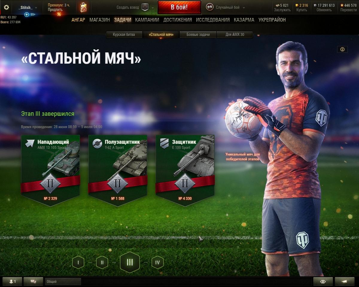 Несколько минут назад пришли плюшки от третьего этапа футбольного режима, на всех трех футбольных танках я попал в топ, пришли медальки, боны и камуфляж, но вот камуфляж с названием "Победитель: Тип 3" пришел в двух экземплярах, а не в трех.