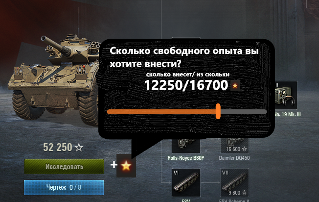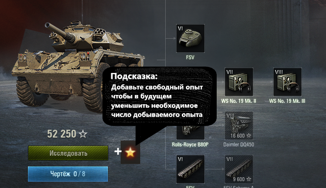 Дорогой читатель(возможно и разработчик), наверное ты задумывался, как неудобно что свободный опыт просто лежит во вкладке и ты случайно используя повышение уровня полевой модернизации забираешь куски драгоценного опыта, а что если взять и дать возможность игрокам намеренно влить имеющийся свободный опыт в неисследованные технику/модуль танка, то есть полное использование свободного опыта заместо боевого