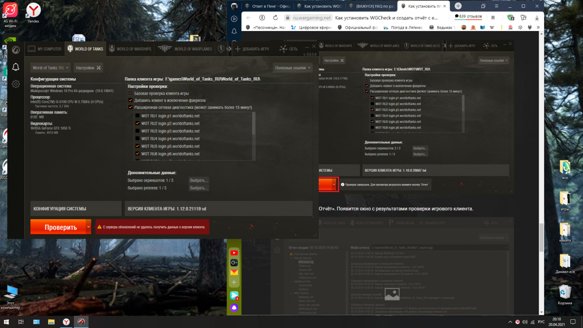 http://cdn-frm-eu.wargaming.net/4.5/style_images/wg/snapback.pnglx2 (19 апр 2021 - 20:16) писал: те цифры пинга, что показываются при запуске игры и тот пинг, что будет в бою - это, как ни странно, разные вещи. если в бою лаги или высокий пинг, то ---> https://ru.wargaming.../article/15288/ читаешь, ставишь и настраиваешь пингплоттер, запускаешь его и клиент игры и начинаешь катать. играешь 20-30 минут, затем отчет пингплоттера сохраняешь и скидываешь либо в саппорт, либо вот в эту тему. заодно можешь и отчет ВГчек приложить. Спасибо, а как насчет информации не касающейся игры, которая входит в отчёт и попадает в ВГ?
