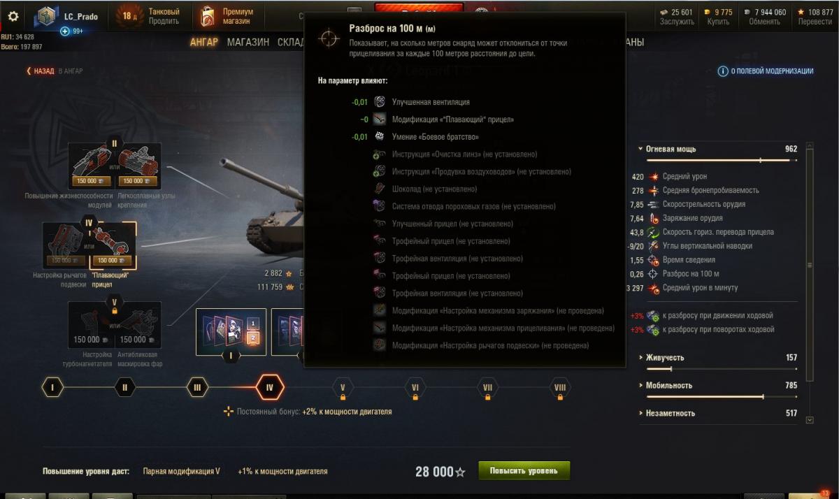 Спасибо за скрин! У меня на Леопарде при такой же установке "Плавающего прицела" - штрафы накладываются, а параметр "разброс орудия" улучшается примерно на НОЛЬ. Круг сведения я вижу непосредственно в бою. Насколько понимаю это та граница, за которую снаряд не вылетит в принципе. Параметр "разброс орудия" влияет на шанс попадания в центр этого круга и не зависит от размера этого круга сведения. Почему тогда параметр разброса орудия меняется - не понятно. Да и вообще описание - "-2% от размер круга сведения" не корректно - у круга есть радиус, диаметр, площадь, длина окружности.... Изменение на 2% одной из величин не приводит к такому же изменению других параметров. Вот не сложно же написать "-2% от радиуса круга сведения", или там от площади....