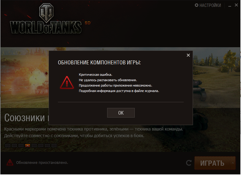 Здравствуйте. При игре возникала ошибка в том что не запускалась карта "степи". Однако на ней было прекрасно видно ход боя в "ушах", но всё висело на экране загрузки. Реши переустановить клиент, изначально через GameCentre, но там из-за непонятной мне аномалии этот самый центр полностью вешал компьютер если в нём хоть что то нажать. Кое как нашёл GameUpdater, его производительность оказалась лучше, и в итоге он смог скачать оба пакета (5 и 7гб). Однако на установке второго происходит постоянная ошибка на 3% распаковки обновления. Третий день уже пытаюсь установить и всё никак. Прилагаю лог, но сразу оговорюсь, как я понял он не может распаковать именно 2 файла wot_1.2.0.19171_sdcontent.wgpkg.001; wot_1.2.0.19171_sdcontent.wgpkg.002 которые сам и скачивал ссылаясь на ошибку данных, а как уже это преодолеть ума не приложу. Надеюсь на вашу помощь. Спасибо.