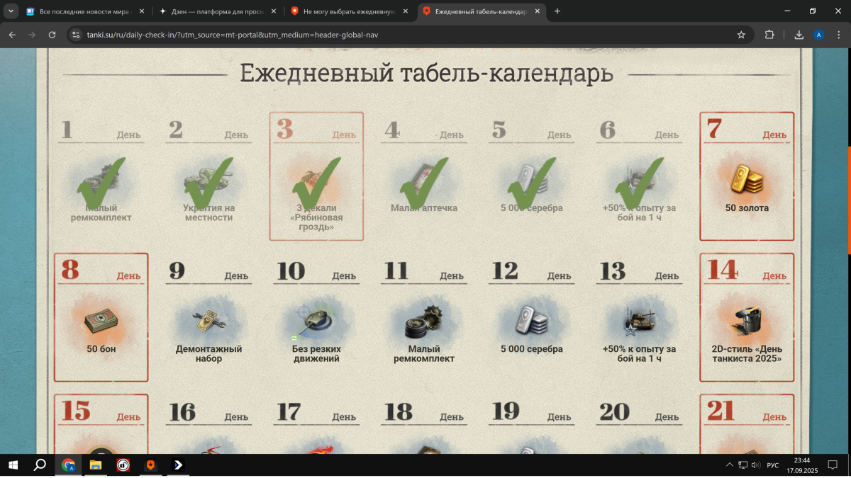Здраствуйте не могу нажать выбрать ежедневную награду в табель календаре на сайте игры.Выходил и заново заходил в учётную запись,перезагружал браузер,компьютор и никак.