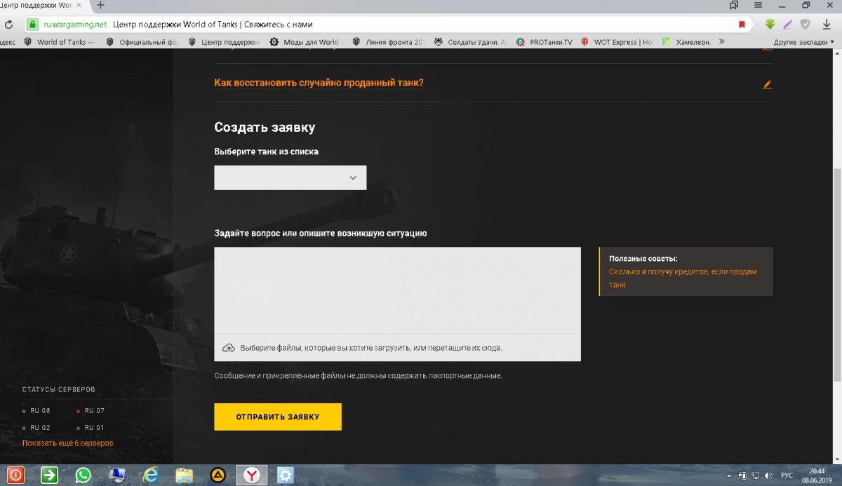 Привет. Уже сутки не могу восстановить технику через Центр Поддержки пользователей. Есть дельные советы? Но только не тупое обновление через F5 в течении 15-40 минут, для меня это верх идиотизма https://forum-mt-prod.lesta.ru/emoticons/Smile_Default.gif