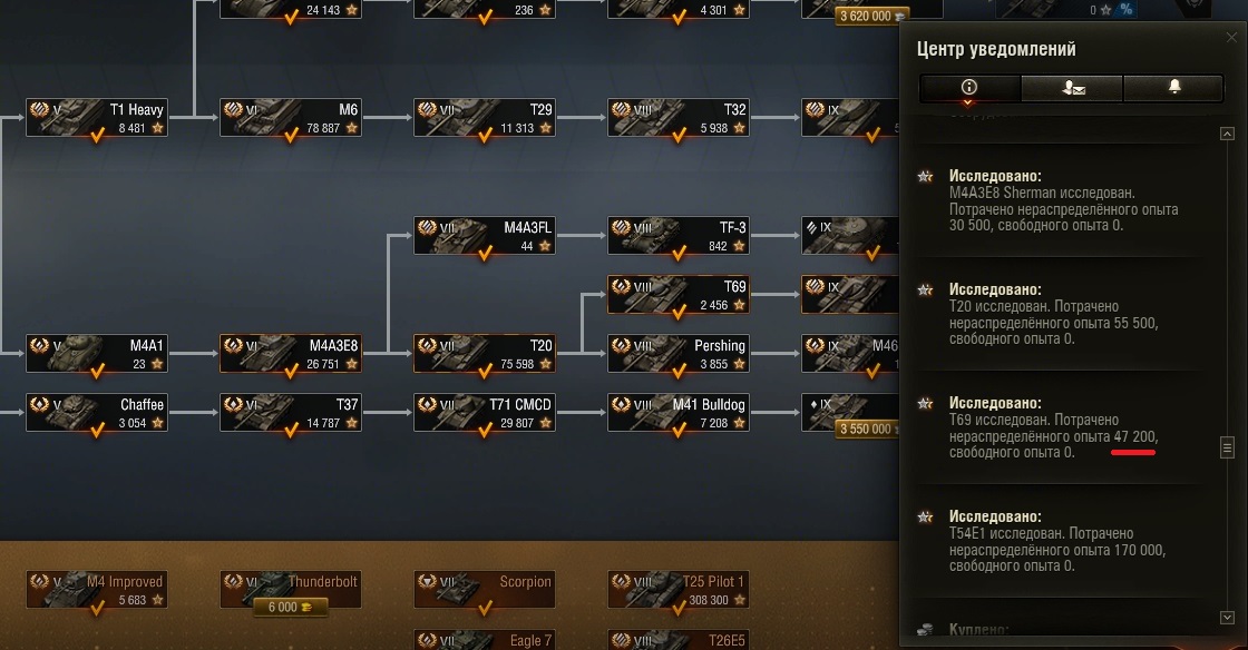 Сбросил ветку T57 Heavy в Орбите, начал исследовать танки и T69 открылся за 47200 опыта. По Wiki требуется 118000 опыта. Необходимый для ветки опыт на 5-8 уровне присутствовал. Чертежи не вкладывались, количество национальных и универсальных чертежей на складе не изменилось. Количество свободного опыта также без изменений. Где-то закралась ошибка? https://forum-mt-prod.lesta.ru/monthly_05_2025/post-96791833-0-48888200-1748343142_thumb.jpg