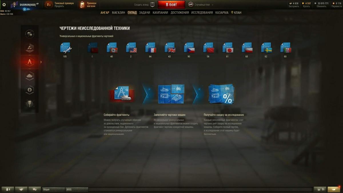 http://cdn-frm-eu.wargaming.net/4.5/style_images/wg/snapback.pngPaul_Rohes (19 дек 2019 - 04:51) писал: Доброго времени суток. Возник вопрос по поводу национальных фрагментов чертежей Чехословакии. Суть в том, что за разного рода игровые ивенты давали эти фрагменты, но у меня ветка Чехов полностью прокачана. Т.к. национальные фрагменты девать некуда, есть ли возможность конвертировать их в универсальные фрагменты или иные? Благодарю за ответ.