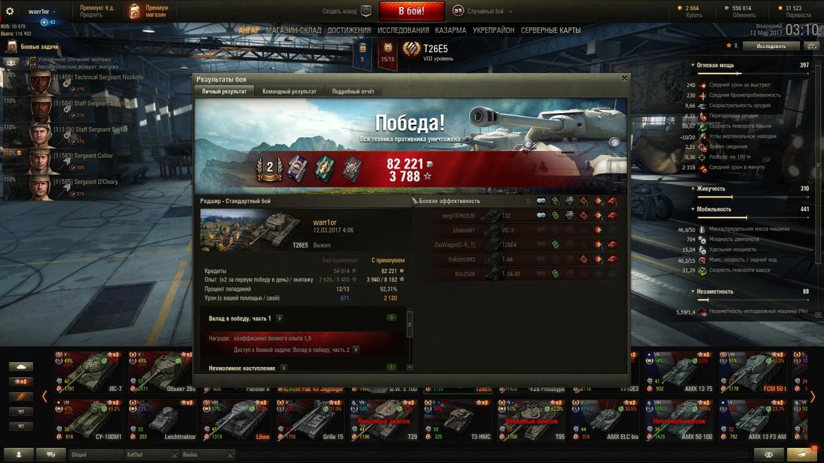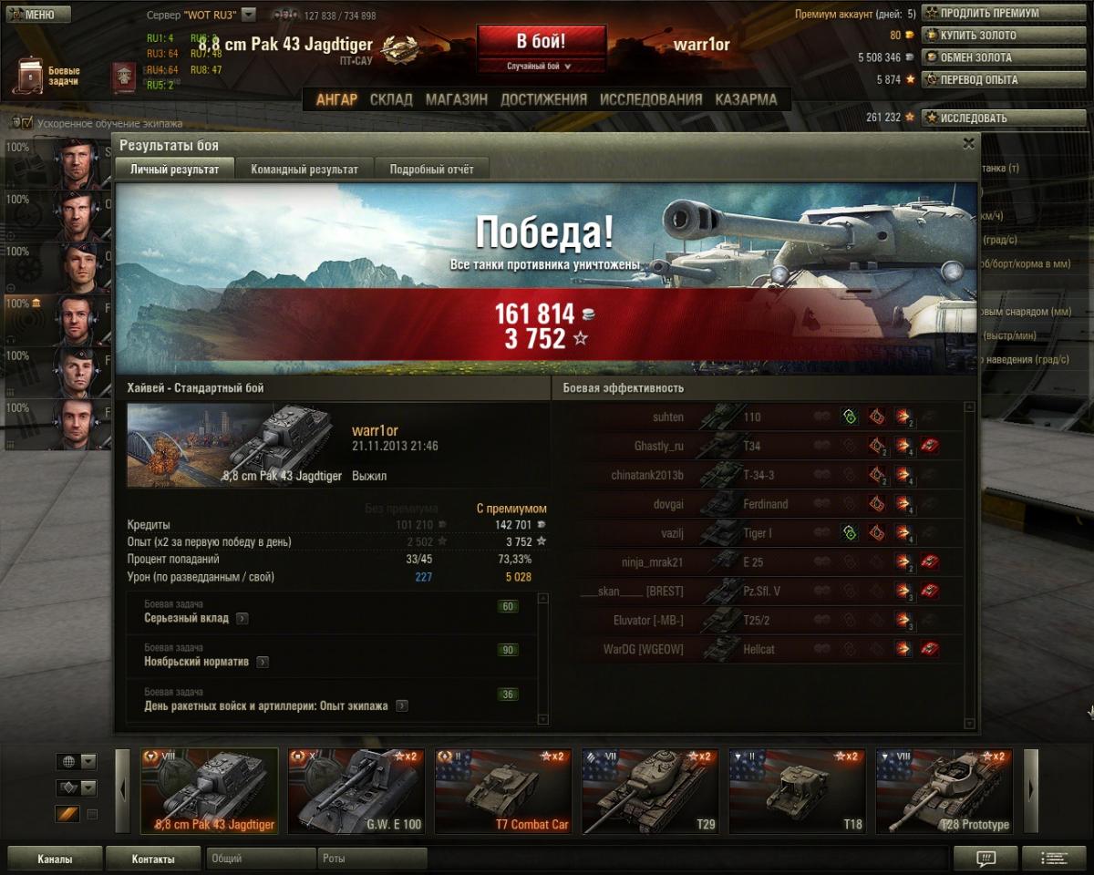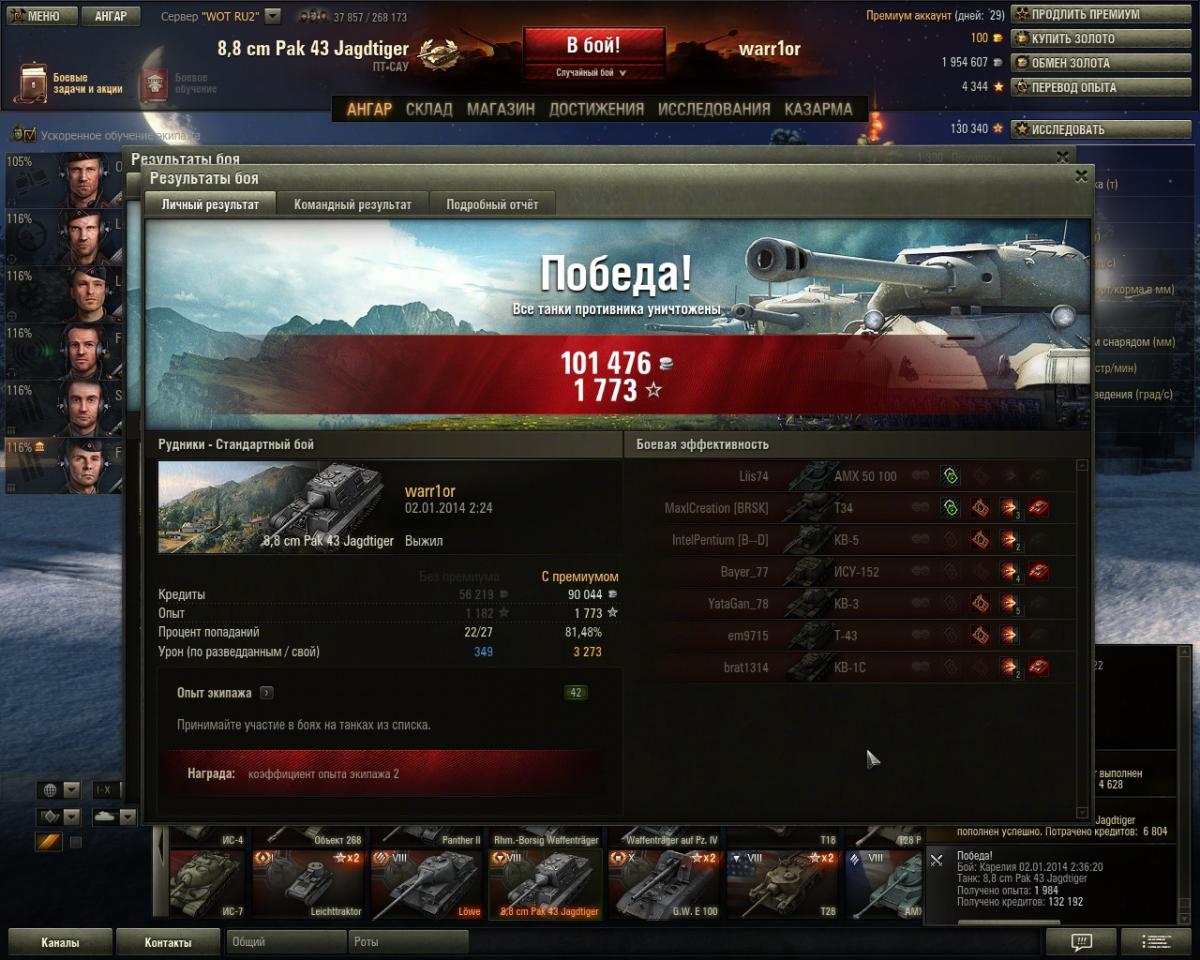Уже в который раз убеждаюсь, что это отличная машинка для фарма и фана, ибо точность позволяет выцеливать слабые места, а мизерная перезарядка не дает гореть вашему пердаку ("рикошет!!??как??? ну ничего, сейчас еще залеплю" ), льготные бои, отличный дпм, а плохая подвижность компенсируется правильной тактикой применения данной птшки. На этом сарае играть одно удовольствие, особенно ставить всяких исов на гуслю и разбирать в каток, эмоции зашкаливают) В ангаре стоит лев, кв5, но больше всего боев откатал на яге88, хоть и процент побед с моими кривыми руками на льве выше, но фана там нет абсолютно. В общем, птшка неоднозначная, вас могут достаточно часто сливать, а потом вы внезапно настреливаете кучу дамага и тащите бой, и поверьте, ваши негативные эмоции испарятся и на лице появится радостная ухмылка)