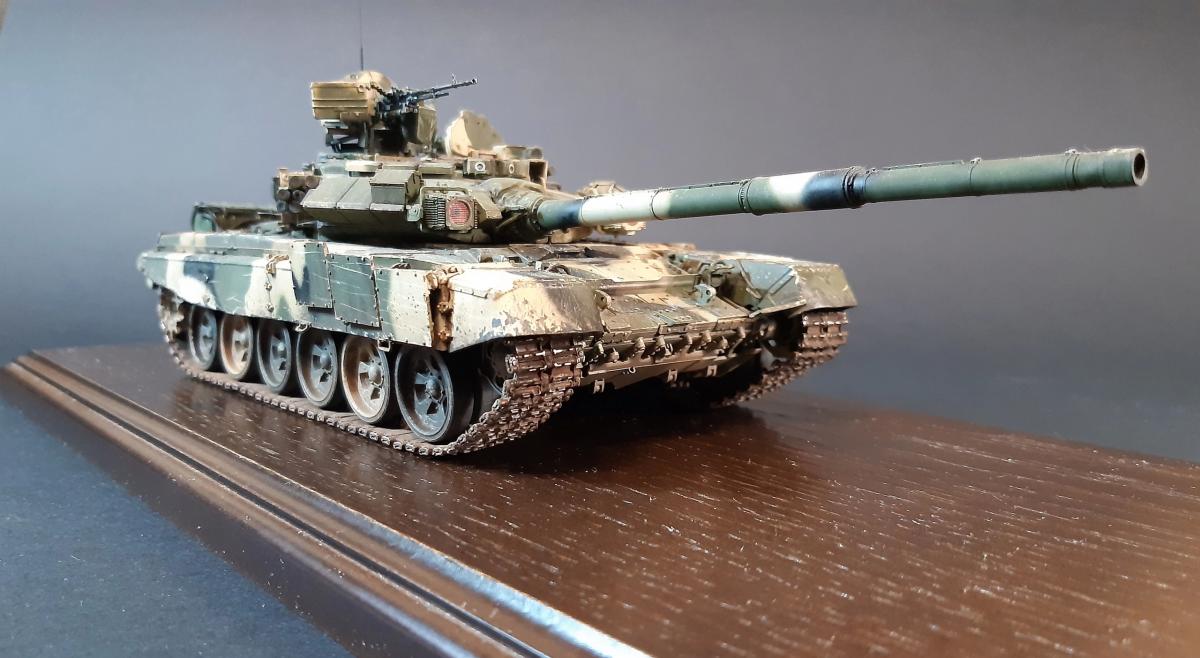 Всем привет! Представляю вашему вниманию свой долгострой - танк Т-90А от MENG в масштабе 1:35. Начал постройку модели в 2016 году. Собрал основные крупные детали; башню, верхнюю часть корпуса, нижнюю часть, катки и траки от фриулмоделс. На этом обстоятельства забрали у меня свободное время на стройку, танк был поставлен на полку и простоял до конца 2020 года. Начинать стройку давно остановленную - такое себе удовольствие, остались мелкие детали и приходилось по нескольку раз пересматривать инструкцию по сборке чтобы не упустить ничего.Итог перед вами.Из дополнений:1. металл траки фриулмоделс2. проволока для протяжки проводки3. метал. антенна с вводом.4. доработал зип. взял за основу одно фото где на зипе есть сетка и петли. решил сделать так же. Для покраски использовал краски тамия, пигменты миг и худ. пастэль, масляные краски. Приятного просмотра! Спасибо за внимание.