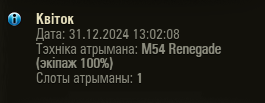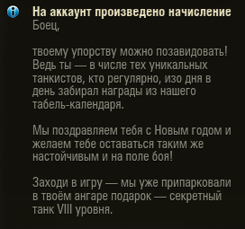 Есть много тем про нытьё и негатив... , но эта про позитив Мне подарили прем восьмёрку за то что я каждый день заходил и забирал награды в календаре) https://forum-mt-prod.lesta.ru/monthly_12_2024/post-95184790-0-05975900-1735640157_thumb.pnghttps://forum-mt-prod.lesta.ru/monthly_12_2024/post-95184790-0-04680400-1735640164_thumb.png спасибо Лесте , делайте ещё больше таких подарков) Всех с наступающим!