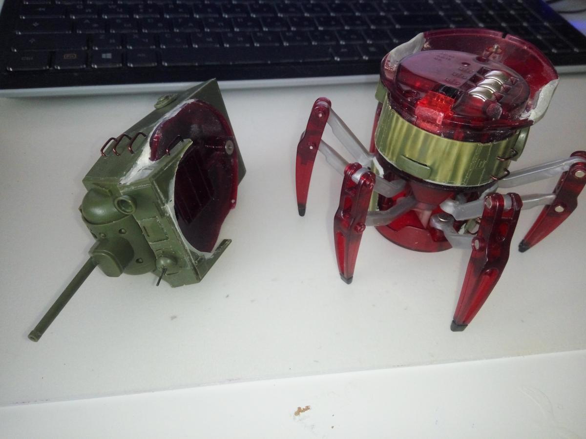 Всем привет! Решил я сделать шагающий танк на основе игрушки Spider hexbug и танка КВ-1, соответственно обозвать сие чудо решил КВ-1Ш =) Сразу признаюсь что идея не полностью оригинальна, где-то на просторах интернета давным давно видел картинку с таким шагающим танком на основе башни КВ-2 Сейчас сама конструкция готова, осталось покрасить Ниже картинки с набросками и результатом. http://cdn-frm-eu.wargaming.net/wot/ru/uploads/monthly_03_2017/post-248250-0-42880300-1490458490_thumb.jpghttp://cdn-frm-eu.wargaming.net/wot/ru/uploads/monthly_03_2017/post-248250-0-42654900-1490458484_thumb.jpghttp://cdn-frm-eu.wargaming.net/wot/ru/uploads/monthly_03_2017/post-248250-0-19525000-1490458539_thumb.jpghttp://cdn-frm-eu.wargaming.net/wot/ru/uploads/monthly_03_2017/post-248250-0-16096200-1490458507_thumb.jpghttp://cdn-frm-eu.wargaming.net/wot/ru/uploads/monthly_03_2017/post-248250-0-92613600-1490458525_thumb.jpghttp://cdn-frm-eu.wargaming.net/wot/ru/uploads/monthly_03_2017/post-248250-0-12195400-1490458516_thumb.jpghttp://cdn-frm-eu.wargaming.net/wot/ru/uploads/monthly_03_2017/post-248250-0-11401200-1490458649_thumb.jpghttp://cdn-frm-eu.wargaming.net/wot/ru/uploads/monthly_03_2017/post-248250-0-90985200-1490458549_thumb.jpg