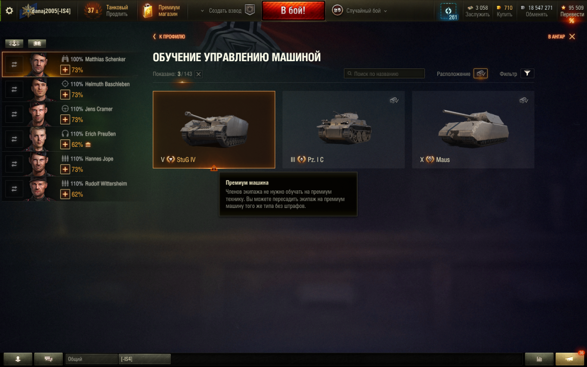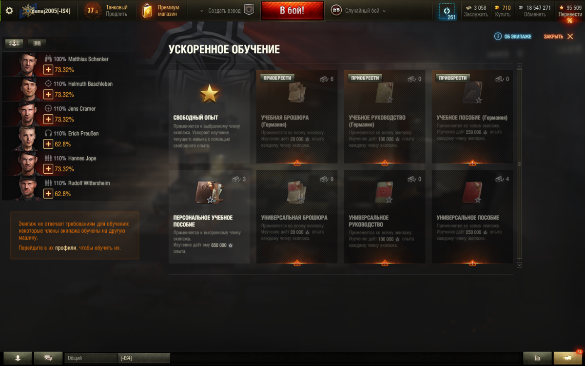 Выбил я значит из коробок прем ПТ-САУ VIII Германии, и хотел посадить на неё экипаж с другой прем ПТ-САУ — так и сделал. Пересадка с прем машины на другую того-же типа идёт без штрафов, но теперь я не могу использовать Учебные брошюры! Пишут что: «Экипаж не отвечает требованиям для обучения: некоторые члены экипажа обучены на другую машину. Перейдите в их профили, что бы обучить их» — проблема в том, что в разделе «обучение управлению машиной» НЕТУ ПРЕМ ТАНКОВ (т.к пересадка без штрафов), т.е. я НЕ МОГУ ПЕРЕОБУЧИТЬ ЭКИПАЖ С ПРЕМ ТАНКА НА ДРУГОЙ ПРЕМ ТАНК того же типа, а без переобучения я не могу использовать Учебные брошюры! Скажите, это я дYPaк чего-то не понимаю, или мне теперь придётся переобучивать экипаж на обычную машину, а потом снова на прем? (в танках я кстати уже 11 лет, а с такой #ERнёй сталкиваюсь впервые!)