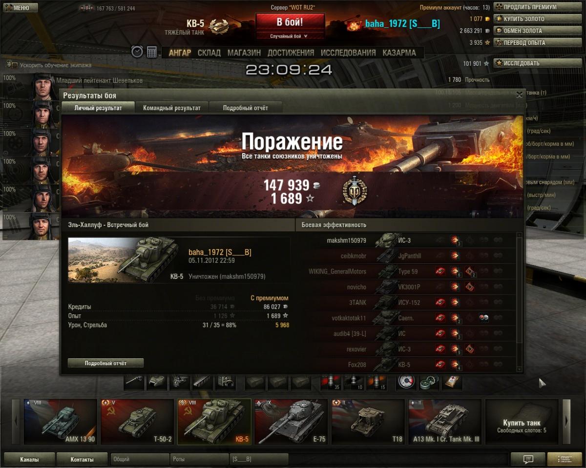 Нанёс 5968 дамага(Мой рекорд), 1689 опыта и 147 939 (за поражение), Зовут меня Алёша да и сам я "Алёшка" (12 лет)+ (Если бы не таран....) Вот ссылка на реплэй : http://wotreplays.ru...17dcb5b2566f55a Вот Ютюбовский вариант: http://cdn-frm-eu.wargaming.net/wot/ru/uploads/monthly_11_2012/post-3255982-0-14847800-1352171234_thumb.jpg Я знаю какие ошибки сделал в этом бою не писать!