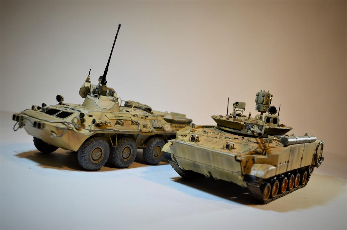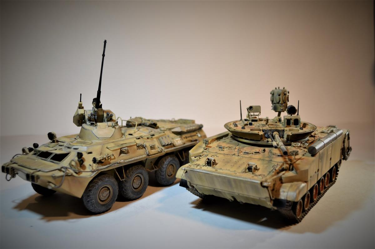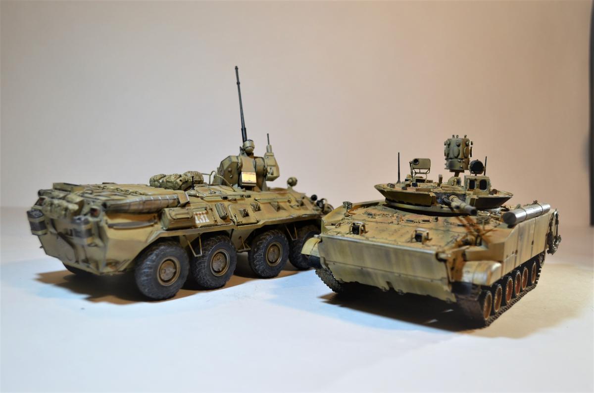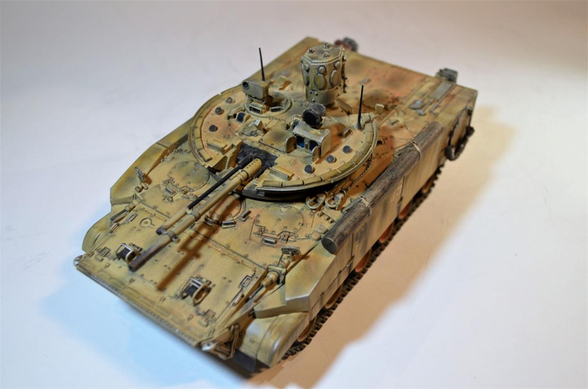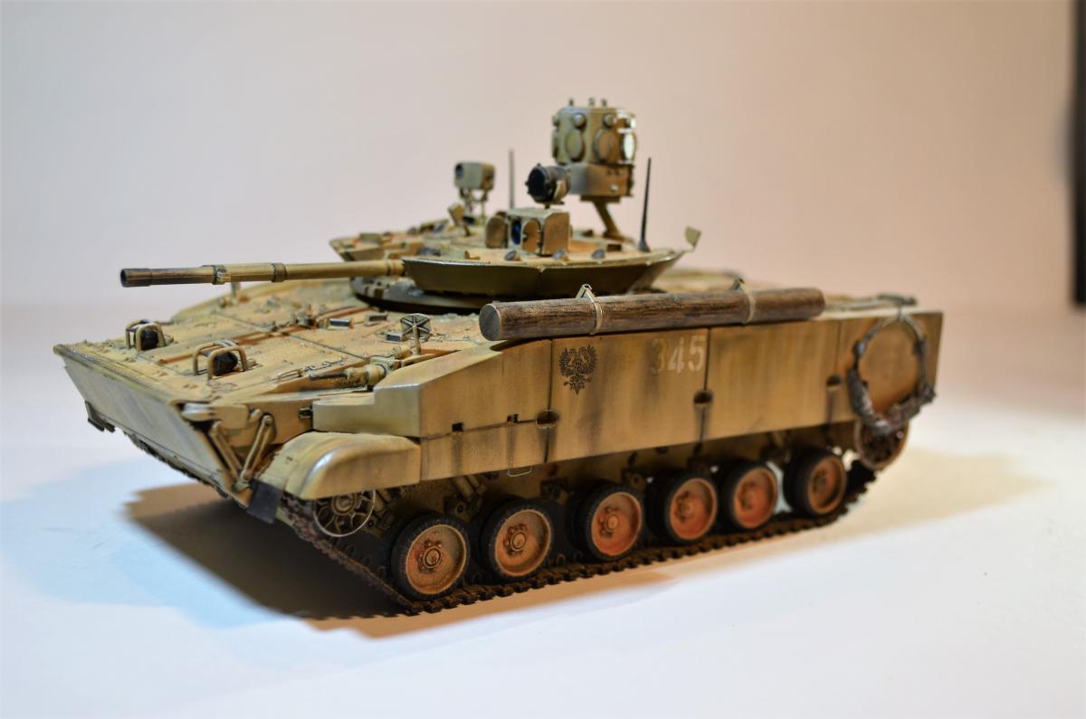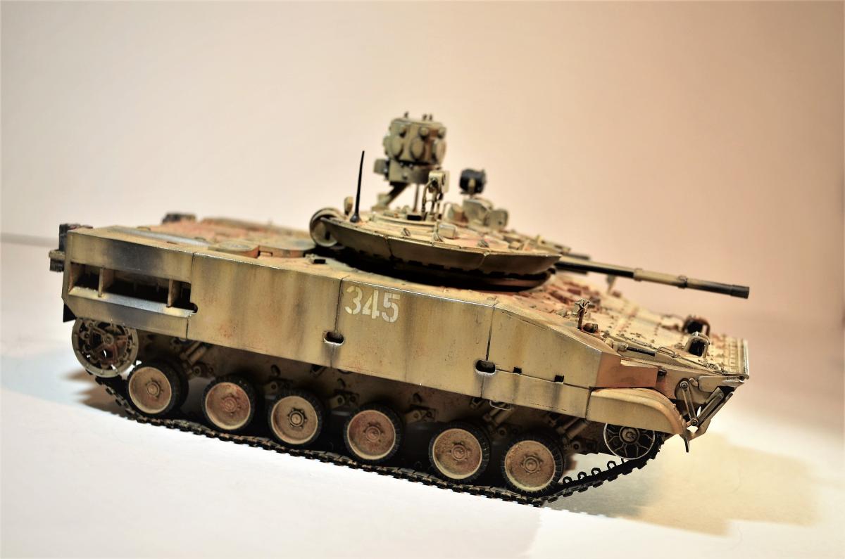 Привет, ребят! Пока идет моя доработка Об.263 , решил поделиться с вами еще одной моей далеко не новой моделью БМП-3М с Комплексом Активной Защиты "Арена". Очень нравится мне этот вариант данной машинки, поэтому решил его в свое время собрать. Если честно, это моя "проба пера", так сказать, в деле САМОПИЛА - это были мои первые шаги в работе с пластиком. Поэтому прошу не судить строго, было это давно и все только-только начиналось. Много писать не буду: аппарат практически весь изкоробочный + немного моего самопила + пластиковые рабочие гусли от MiniArm (по-моему так, если не ошибаюсь, если что, простите великодушно). Красилось и лакировалось, как всегда, Тамиевской аэрозолью. Наносились Тамиевские пигменты. Общая направленность модели - машина в условиях городского боя на Ближнем Востоке. Надеюсь на ваше снисхождение на мелкие косяки и недочеты. Всем удачи.