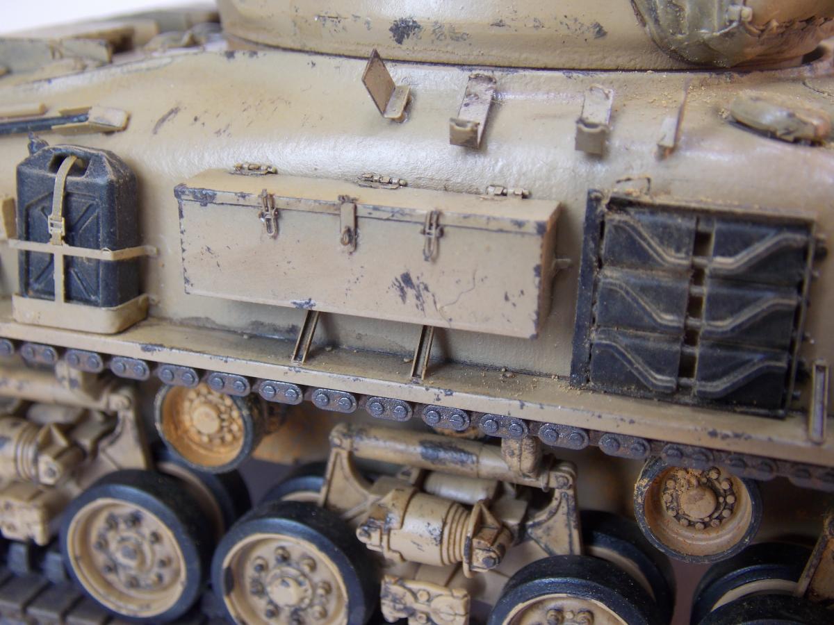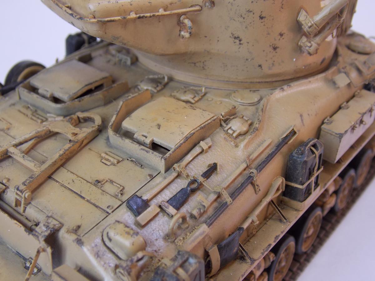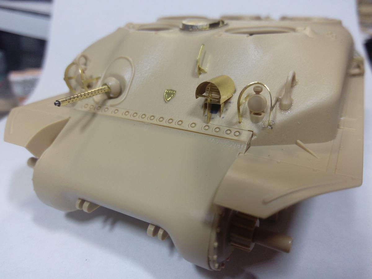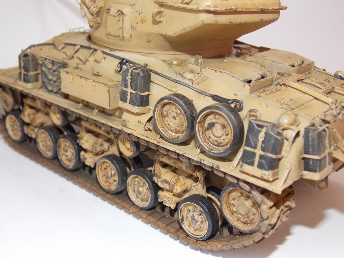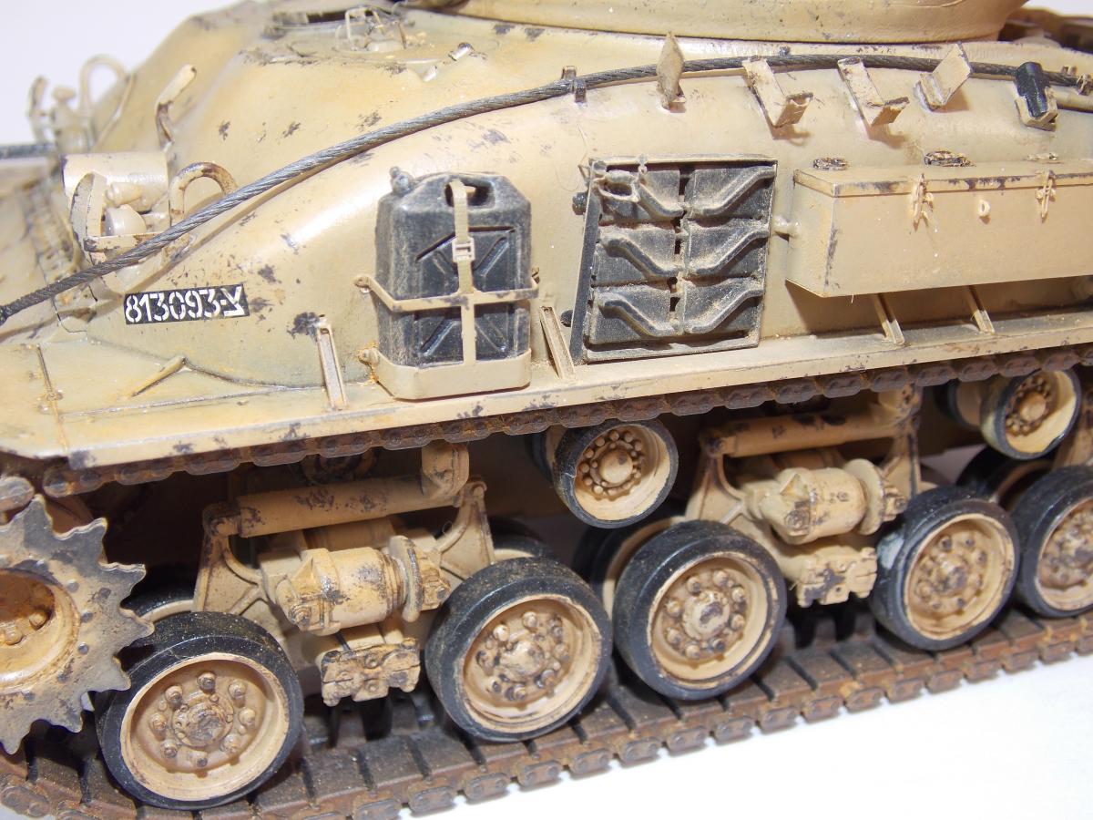 Представляю модель танка М51 Супершерман, в игре он представлен как французский Revolise. «Шерман M-51» (также известен под наименованием M51HV «Super Sherman» или «Isherman» — Israeli Sherman) — израильская модификация американского среднего танка M4 «Шерман».Танк был разработан в 1962 году, всего было изготовлено более 200 шт. Отличается установкой нового, более мощного орудия (укороченной модификации 105-мм французского танкового орудия CN-105-F1); дизельного двигателя Cummins VT8-460; горизонтальной подвески HVSS; автоматической трансмиссии; 23-дюймовых гусениц; наличием увеличенной кормовой ниши, приваренной к корме башни.К лету 1964 года модернизацию до уровня M-51 прошли 90 «шерманов», а к началу Шестидневной войны в 1967 году Армия обороны Израиля располагала 515 исправными танками «шерман» всех модификаций, из них на M-51 пришлось 177 единиц.В 1973 году Израиль имел 340 M-51.Tанки находились на вооружении по меньшей мере до 1981 года[4], затем были переведены в резервные части, а потом по большей части списаны и распроданы.Около 150 шт. танков M51 было продано в Чили (где использовались до середины 1990-х годов), ещё несколько десятков было передано в Ливан, незначительное количество — в Аргентину, Никарагуа, Уганду. За основу взята модель Тамиии и травление от Вояджер. Окраска новыми для меня АК реал колор.