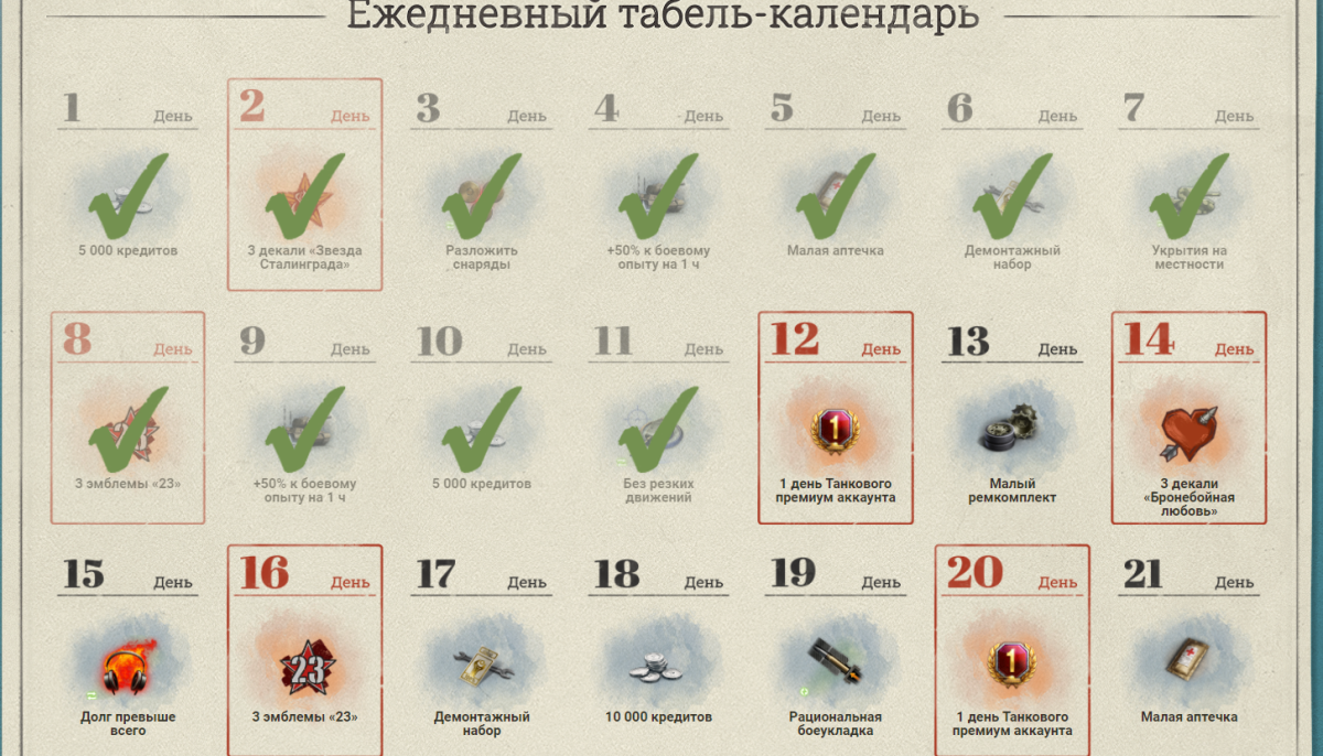 Прожал в табеле на 12й день на прем вкладка о получении появилась. Но прем не выдал. Перезапустил игру, према нет. Обновил страницу календаря - как будто и не прожимал и сейчас не прожать. пс пробовал найти тему чтоб не открывать новую, но так не нашел - все "похожие" темы закрыты.