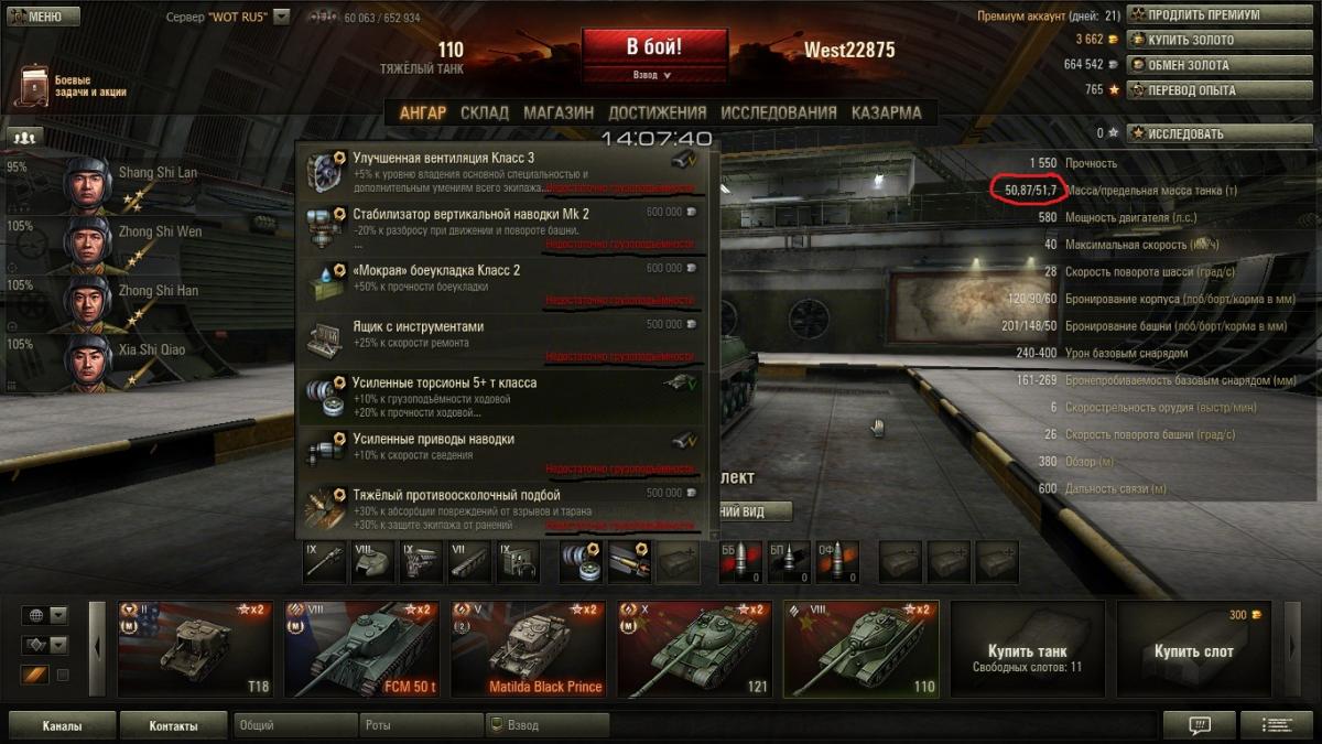 Товарищи форумчане, не знал в какую тему писать.. но получился вот такой вот конфуз. Купил я 110, поставил торсионы, дабы сразу влепить топ пушку и башню, но когда начал расставлять модули, в меню модулей писалось, мол, недостаточно грузоподъемности, а модули тем не менее благополучно устанавливались. Да и запас грузоподъемности был около тонны.