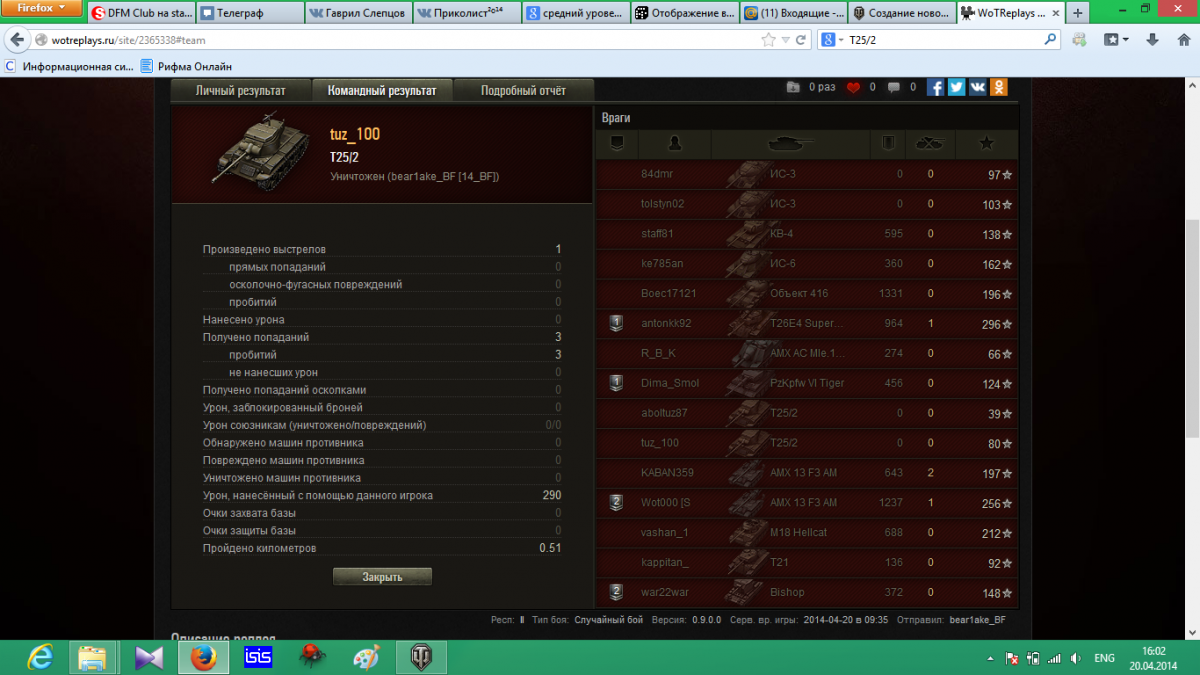 Всем здравия желаю, у меня к вам вопрос. После введения обновления 9.0, стало возможно "отрыва" башни с танков после подрыва БК. Так вот, я, конечно, рад нововведению, игра стала после этого зрелищной. Игроки с весельем указывают на чью-то башню на земле. Но мне, именно сегодня, не было дозволено порадоваться горячей, крученой и летающей башней T25/2 у игрока tuz_100, после подрыва оному БК на Т25/2. Я даже подумал, может он настрелял множество снарядов, но нет, он стрелял ведь тогда только 1 раз. Вопрос: Где моя крученая, жареная, и летающая башня?????? Ссылка на реплей: http://wotreplays.ru/site/2365338#erlenberg-bear1ake_bf-isu-152 http://cdn-frm-eu.wargaming.net/wot/ru/uploads/monthly_04_2014/post-12051564-0-68838300-1397974347_thumb.jpghttp://cdn-frm-eu.wargaming.net/wot/ru/uploads/monthly_04_2014/post-12051564-0-49836500-1397974346_thumb.jpghttp://cdn-frm-eu.wargaming.net/wot/ru/uploads/monthly_04_2014/post-12051564-0-27099100-1397974373_thumb.png