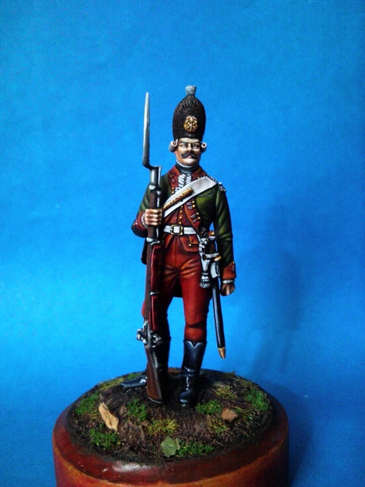 Приветствую снова. Фигурка масштаба 60 mm. 1/30 хотя очень похожи размерами с другой известной фирмой. Россия. Олово. Артикул ОП60058. Производитель - Оловянный Парад. 7 Деталей. 2 фигурки выполнены в разных стилях. Первая в более сложном "Испанском" стиле. Вторая в реалистичном (попроще). Акрил ГВ, Lifecolor, Polycilor, Звезда, NMM, масло. С Уважением.