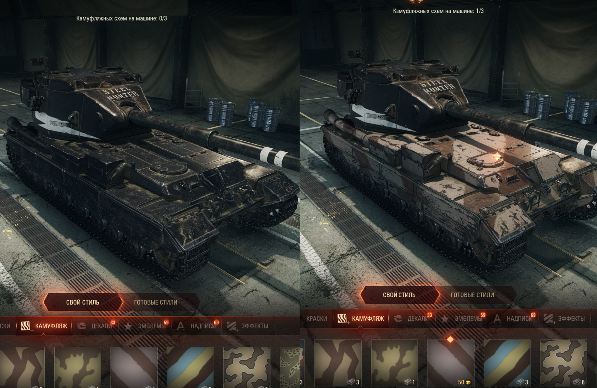 Здравствуйте, вопрос такой, очень хочется приобрести "Черный бульдог", но все эти наклейки, да и честно цвет, не очень радует глаз, такая же ситуация была с 13-57, появится ли возможность игрокам самостоятельно ставить обычный камуфляж, какой они хотят, чтобы техника была похоже на боевой танк,а не на разукрашенную машинку для рекламы.