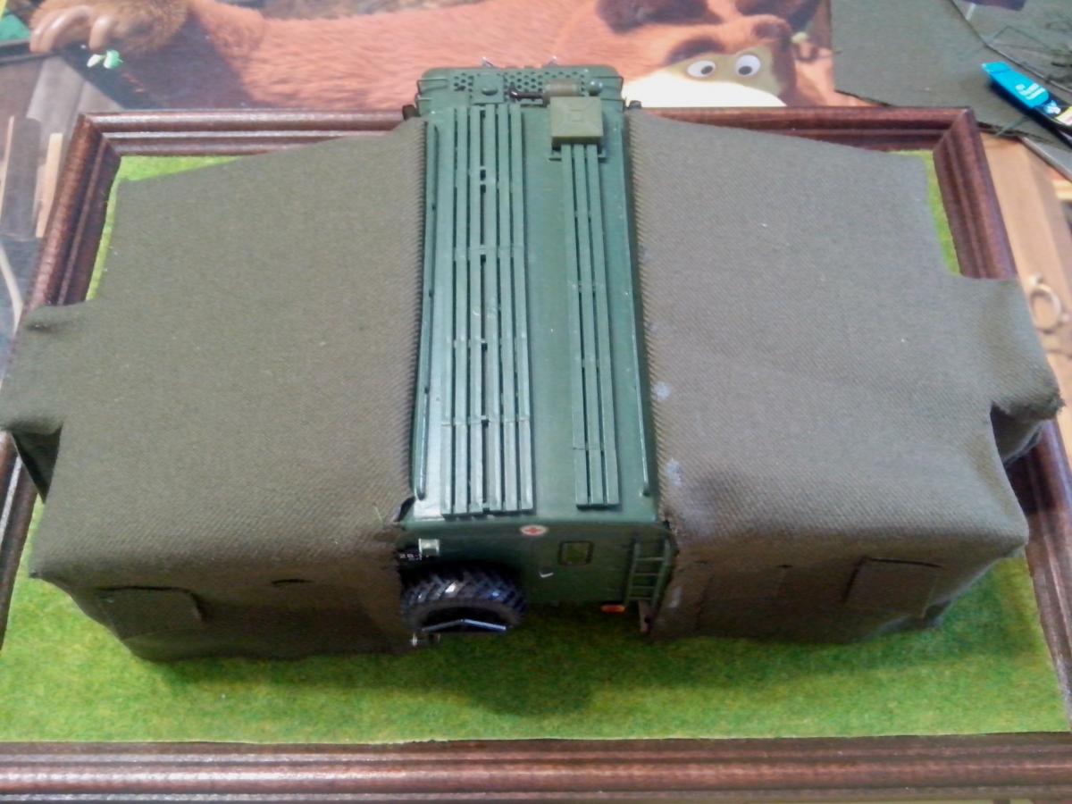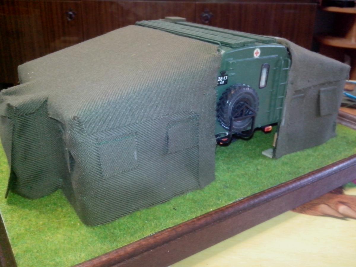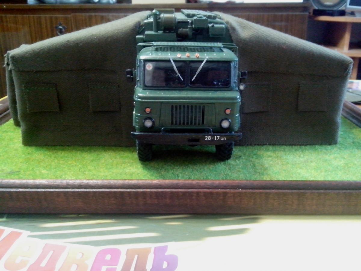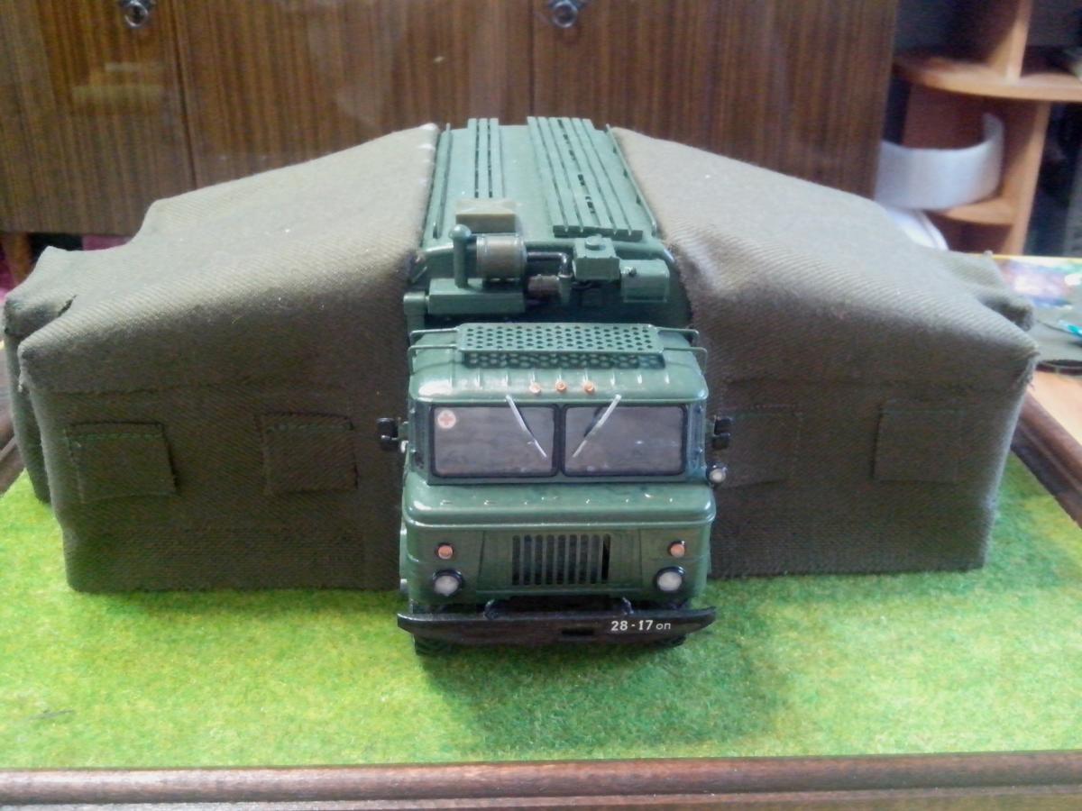 Представляю собранную в развернутом положении автоперевязочную на базе ГАЗ-66 АП-2. Сборка производилась из наборов ГАЗ-66 от восточного экспресса и ЗиЛ-131 КШМ от ICM, а также различной проволоки, ткани и прочее... Покраска акрилом звезды и ревелл.