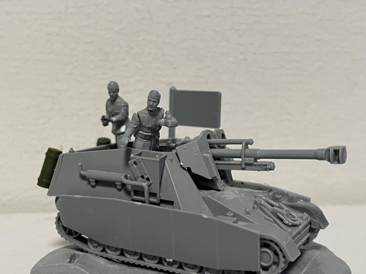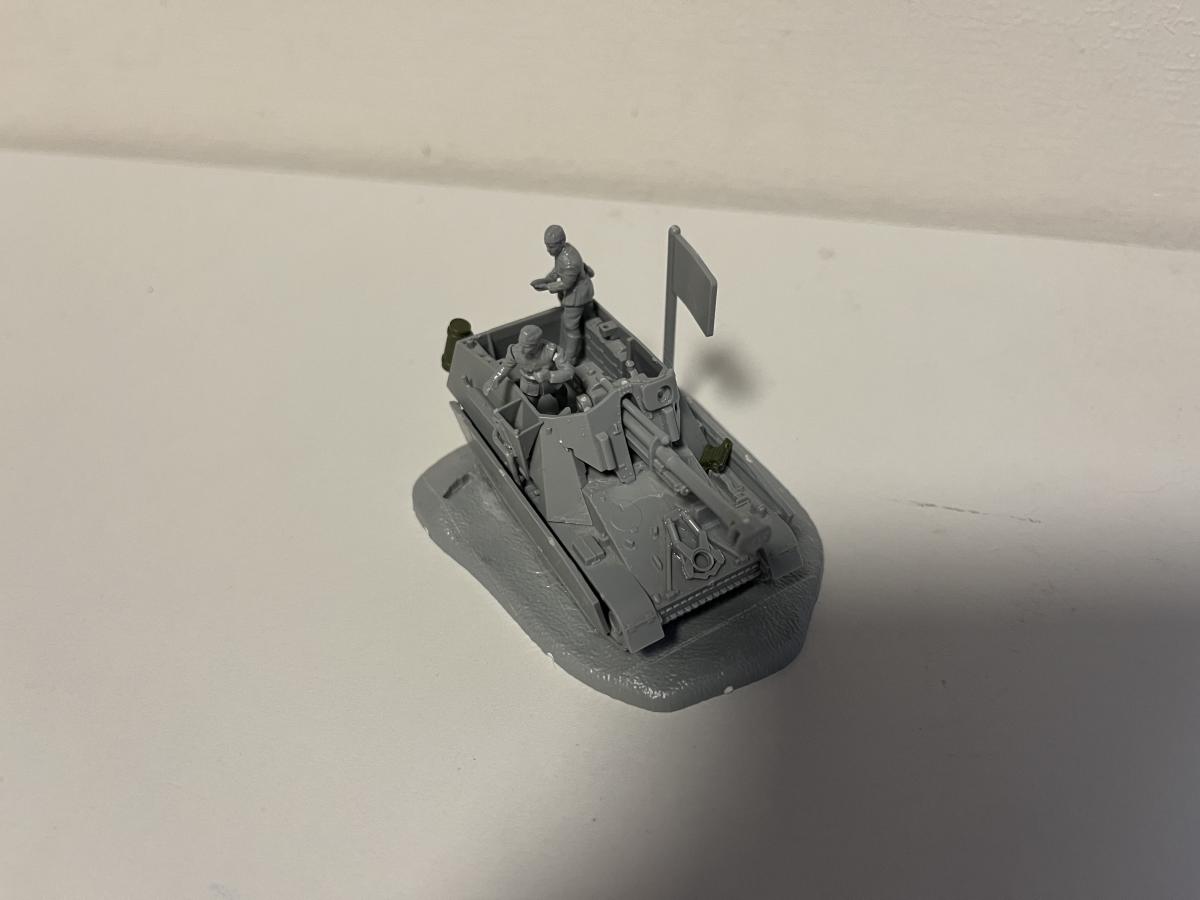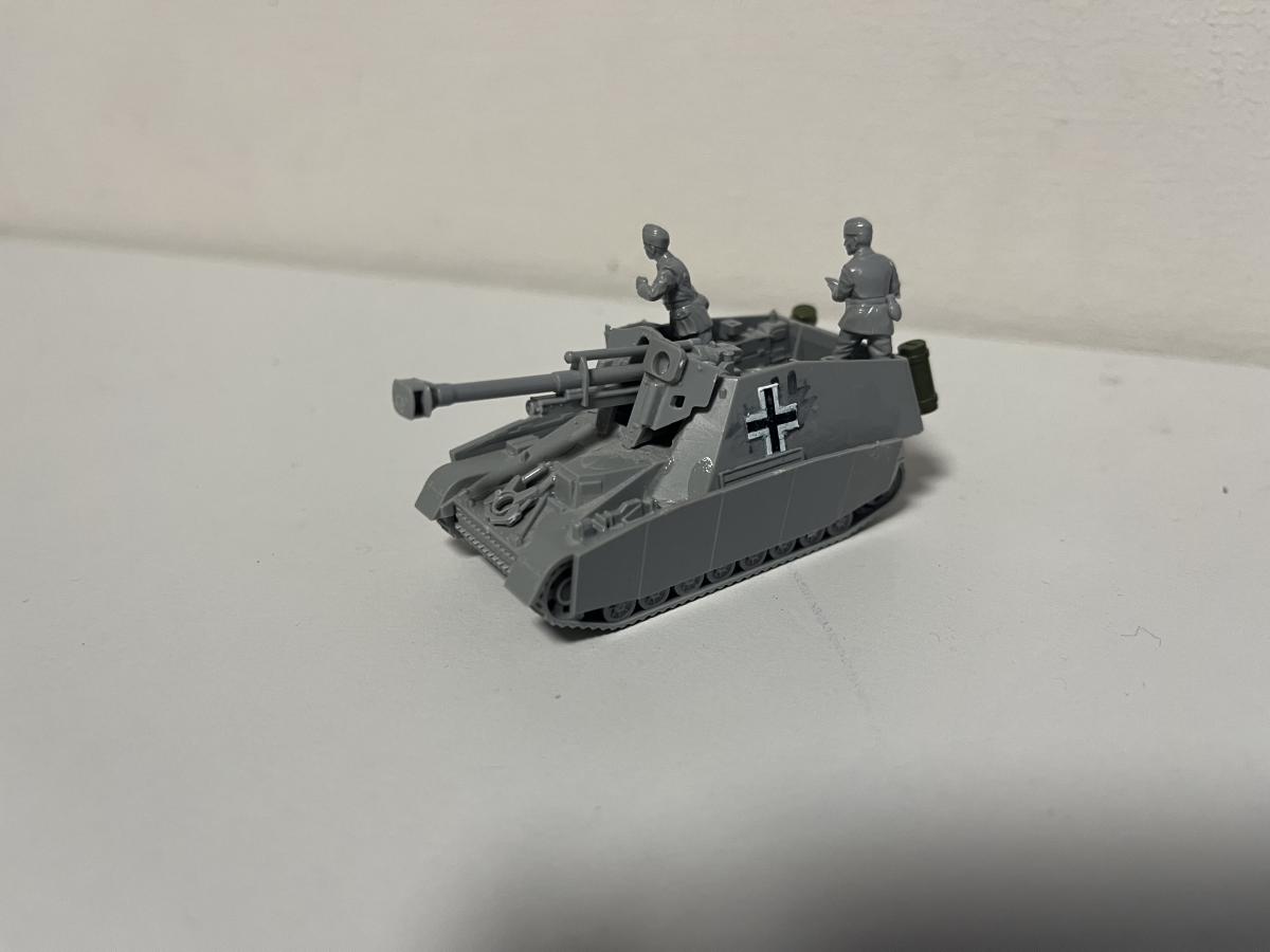 Для начала взял два набора: "Hummel 1:100" и "FPaK-40 с расчётом 1:144". Моя задумка заключалась в монтировании 76-мм пушки в 1:144 на платформу ПТ-САУ 1:100, ведь тогда пушка станет 122-мм. Ювелирная точность была не важна, поэтому крышу на половину я не закрыл, а Stug-4 разбирать для "надсисьника" радиста мне было жалко. https://forum-mt-prod.lesta.ru/monthly_02_2025/post-93880906-0-11452100-1739870440_thumb.jpeghttps://forum-mt-prod.lesta.ru/monthly_02_2025/post-93880906-0-89434800-1739870577_thumb.jpeg Я собрал боевое отделение(если не ошибаюсь в терминологии), монтировал пушку. Снял пулемёты до лучших времён-экипаж должен был иметь лишь 3 личных пистолета-пулемёта, что обошлось бы в 350 рублей. Так же для целостности решил снять моторные решётки и заменить их позже на литую часть. Прикрепил подвеску, днище и подгусеничные экраны. Но, так как я делаю не совсем историчную машину-могу позволить себе установить +2 экрана из набора "Pz. IV G 1:100" на клей. Из правой решётки двигателя теперь выходит выхлопная труба. https://forum-mt-prod.lesta.ru/monthly_02_2025/post-93880906-0-25562900-1739870623_thumb.jpeghttps://forum-mt-prod.lesta.ru/monthly_02_2025/post-93880906-0-05574200-1739870692_thumb.jpeg Добавил так же двух членов экипажа-заряжающего и наводчика. Закрепил откидной задник, моторно-трансмиссионное отделение теперь имеет историческое расположение(судя по чертежам и модулям, включая из игры). На орудие прикрепил прицел, т.к рубка открытая и прицел в таком случае крепится на маску. Добавил держатель орудия для марша, т.к хиленькая конструкция от "Hummel 1:100" попросту не способна держать все 300 килограмм. (Для сравнения, маска и орудие от Hummel) https://forum-mt-prod.lesta.ru/monthly_02_2025/post-93880906-0-62237400-1739870731_thumb.jpeghttps://forum-mt-prod.lesta.ru/monthly_02_2025/post-93880906-0-03067500-1739870793_thumb.jpeg Прикрепил бочки с горючим, так же для марша. Видимо, я и в правду сделаю диораму с маршем, к тому же у меня имеются многие другие немецкие машины из этой серии, но как-нибудь в другой раз, согласно правилам конкурса. Подклеил некоторые детали, прикрепил снизу арт. опоры для ведение стационарной стрельбы в качестве САУ на ближние дистанции(такое предусматривалось). А так же навесной ящик для хранения личных вещей. Ну и куда же без креста танковых СС! https://forum-mt-prod.lesta.ru/monthly_02_2025/post-93880906-0-52194400-1739870819_thumb.jpeghttps://forum-mt-prod.lesta.ru/monthly_02_2025/post-93880906-0-30198800-1739870865_thumb.jpeg На последок ещё раз подклеиваю все детали и устанавливаю модель на подставку из набора со "Sturmgeshutz 4 1:100". Поставил флажок. Готово! Осталась только покраска, в тоже время и самое сложное. Я решил не красить свою модель, т. к. акриловые краски от бренда "ZVEZDA" не очень подходят для таких точечных работ, к тому же у меня вышло порядка 10 миллиграмм клея этой же фирмы, что осложняет и без того невыполнимую задачу. https://forum-mt-prod.lesta.ru/monthly_02_2025/post-93880906-0-02653000-1739870907_thumb.jpeghttps://forum-mt-prod.lesta.ru/monthly_02_2025/post-93880906-0-61614200-1739870941_thumb.jpeg Своей цели я добился- сделал полностью проработанную модель со сценкой выезда на боевое задание. Но, при этом, это не диорама, т. к. в ней не были использованы искусственные кустарники, в ней не использовались спец. инструменты, вроде резца или сверла; она даже толком не покрашена! https://forum-mt-prod.lesta.ru/monthly_02_2025/post-93880906-0-26277900-1739870984_thumb.jpeghttps://forum-mt-prod.lesta.ru/monthly_02_2025/post-93880906-0-13939900-1739871007_thumb.jpeg Итоговая стоимость модели в пересчёте на рубли: набор "Hummel 1:100"-350, набор "Stug. IV 1:100"-270, набор "Panzer Aufkl. IV G 1:100"-280, набор "СУ-85 1:100"-290, набор "FPaK 40 с расчётом 1:144", набор "Hanomag с пулемётом 1:100"-270; вычитаем из второго набора кассету, флаг, надствольник, выхлоп и прицел-54, из первого всё кроме пушки, ма