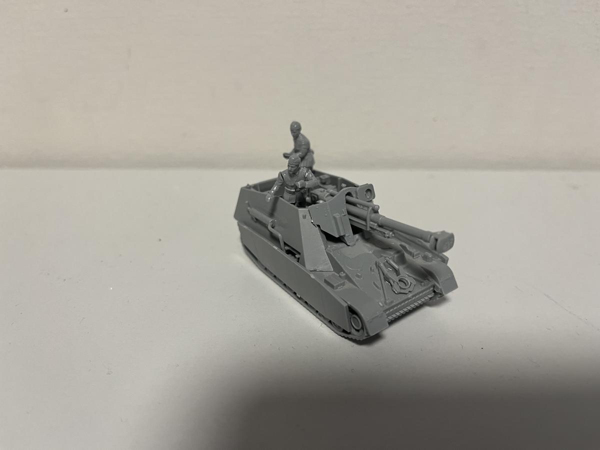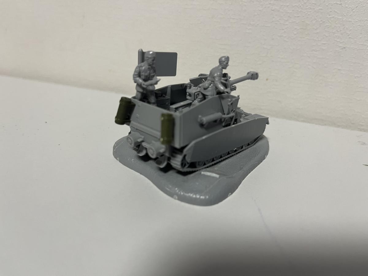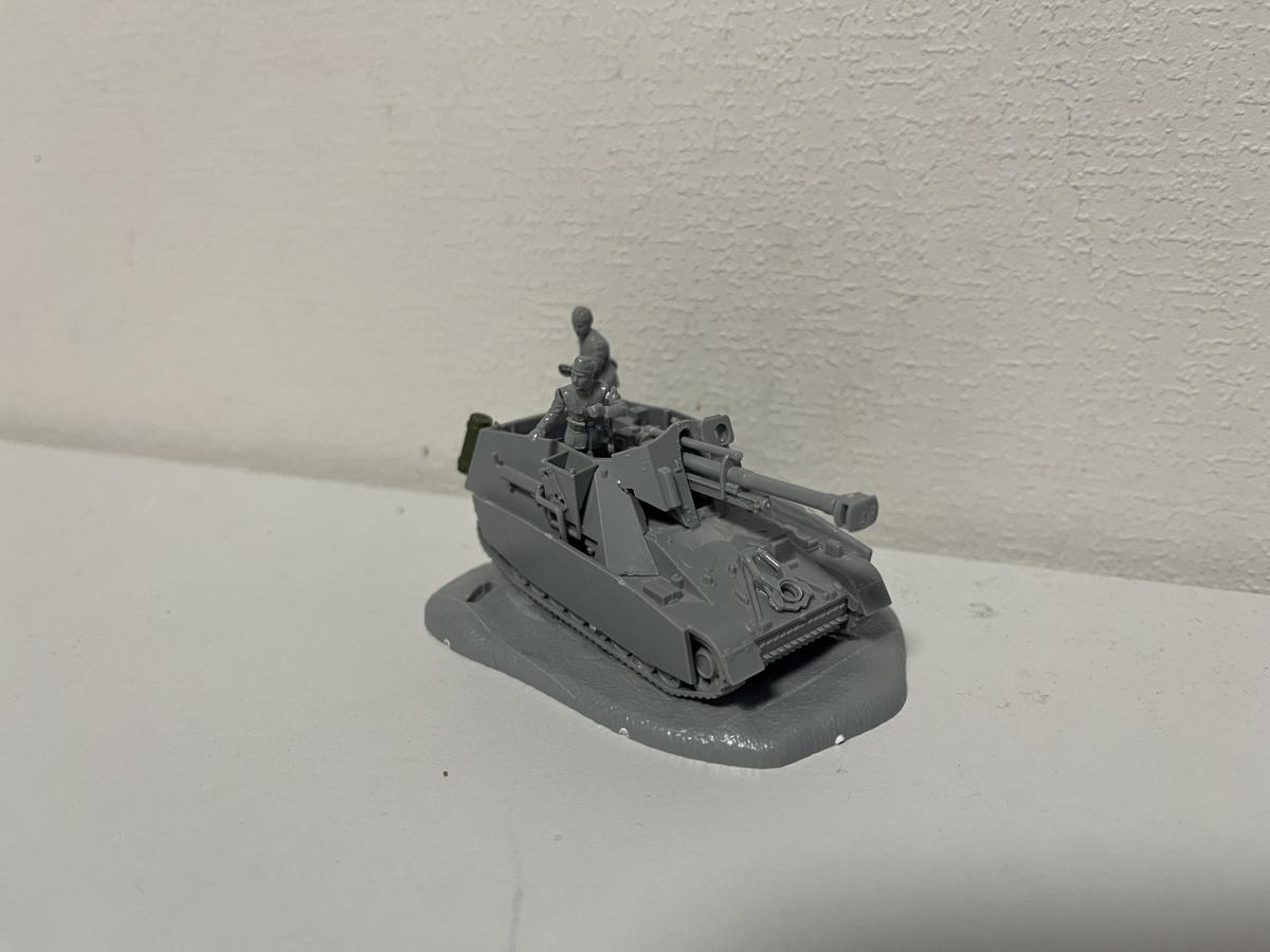 Для начала взял два набора: "Hummel 1:100" и "FPaK-40 с расчётом 1:144". Моя задумка заключалась в монтировании 76-мм пушки в 1:144 на платформу ПТ-САУ 1:100, ведь тогда пушка станет 122-мм. Ювелирная точность была не важна, поэтому крышу на половину я не закрыл, а Stug-4 разбирать для "надсисьника" радиста мне было жалко. https://forum-mt-prod.lesta.ru/monthly_02_2025/post-93880906-0-11452100-1739870440_thumb.jpeghttps://forum-mt-prod.lesta.ru/monthly_02_2025/post-93880906-0-89434800-1739870577_thumb.jpeg Я собрал боевое отделение(если не ошибаюсь в терминологии), монтировал пушку. Снял пулемёты до лучших времён-экипаж должен был иметь лишь 3 личных пистолета-пулемёта, что обошлось бы в 350 рублей. Так же для целостности решил снять моторные решётки и заменить их позже на литую часть. Прикрепил подвеску, днище и подгусеничные экраны. Но, так как я делаю не совсем историчную машину-могу позволить себе установить +2 экрана из набора "Pz. IV G 1:100" на клей. Из правой решётки двигателя теперь выходит выхлопная труба. https://forum-mt-prod.lesta.ru/monthly_02_2025/post-93880906-0-25562900-1739870623_thumb.jpeghttps://forum-mt-prod.lesta.ru/monthly_02_2025/post-93880906-0-05574200-1739870692_thumb.jpeg Добавил так же двух членов экипажа-заряжающего и наводчика. Закрепил откидной задник, моторно-трансмиссионное отделение теперь имеет историческое расположение(судя по чертежам и модулям, включая из игры). На орудие прикрепил прицел, т.к рубка открытая и прицел в таком случае крепится на маску. Добавил держатель орудия для марша, т.к хиленькая конструкция от "Hummel 1:100" попросту не способна держать все 300 килограмм. (Для сравнения, маска и орудие от Hummel) https://forum-mt-prod.lesta.ru/monthly_02_2025/post-93880906-0-62237400-1739870731_thumb.jpeghttps://forum-mt-prod.lesta.ru/monthly_02_2025/post-93880906-0-03067500-1739870793_thumb.jpeg Прикрепил бочки с горючим, так же для марша. Видимо, я и в правду сделаю диораму с маршем, к тому же у меня имеются многие другие немецкие машины из этой серии, но как-нибудь в другой раз, согласно правилам конкурса. Подклеил некоторые детали, прикрепил снизу арт. опоры для ведение стационарной стрельбы в качестве САУ на ближние дистанции(такое предусматривалось). А так же навесной ящик для хранения личных вещей. Ну и куда же без креста танковых СС! https://forum-mt-prod.lesta.ru/monthly_02_2025/post-93880906-0-52194400-1739870819_thumb.jpeghttps://forum-mt-prod.lesta.ru/monthly_02_2025/post-93880906-0-30198800-1739870865_thumb.jpeg На последок ещё раз подклеиваю все детали и устанавливаю модель на подставку из набора со "Sturmgeshutz 4 1:100". Поставил флажок. Готово! Осталась только покраска, в тоже время и самое сложное. Я решил не красить свою модель, т. к. акриловые краски от бренда "ZVEZDA" не очень подходят для таких точечных работ, к тому же у меня вышло порядка 10 миллиграмм клея этой же фирмы, что осложняет и без того невыполнимую задачу. https://forum-mt-prod.lesta.ru/monthly_02_2025/post-93880906-0-02653000-1739870907_thumb.jpeghttps://forum-mt-prod.lesta.ru/monthly_02_2025/post-93880906-0-61614200-1739870941_thumb.jpeg Своей цели я добился- сделал полностью проработанную модель со сценкой выезда на боевое задание. Но, при этом, это не диорама, т. к. в ней не были использованы искусственные кустарники, в ней не использовались спец. инструменты, вроде резца или сверла; она даже толком не покрашена! https://forum-mt-prod.lesta.ru/monthly_02_2025/post-93880906-0-26277900-1739870984_thumb.jpeghttps://forum-mt-prod.lesta.ru/monthly_02_2025/post-93880906-0-13939900-1739871007_thumb.jpeg Итоговая стоимость модели в пересчёте на рубли: набор "Hummel 1:100"-350, набор "Stug. IV 1:100"-270, набор "Panzer Aufkl. IV G 1:100"-280, набор "СУ-85 1:100"-290, набор "FPaK 40 с расчётом 1:144", набор "Hanomag с пулемётом 1:100"-270; вычитаем из второго набора кассету, флаг, надствольник, выхлоп и прицел-54, из первого всё кроме пушки, ма