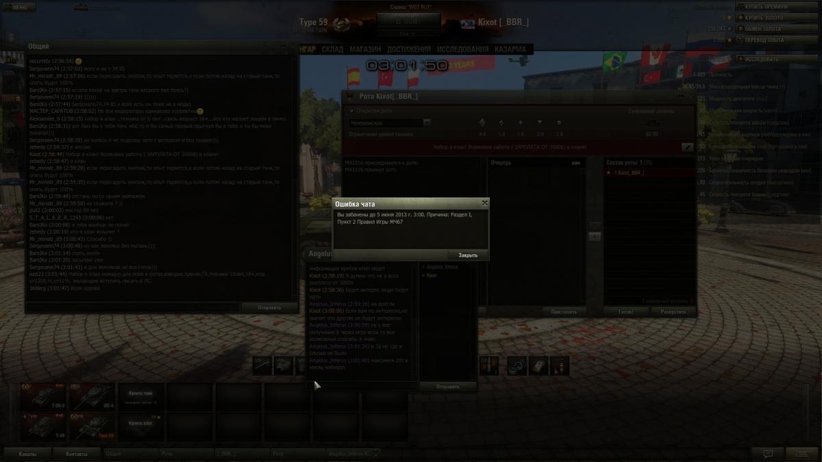 Внимание! Идёт набор в начинающий клан. Прайм-тайм клана 20:00- 24:00 по МСК. Требования к рекрутам: Рейтинг по бронесайту 6000+КПД по WOT-NEWS(не WN6/WN7, а именно РЭ) 1300+ Наличие 3+ танков 10 уровня.Возраст 20+Дополнительные требования: Адекватность, соблюдение прайм-тайма. Всем бойцам клана соблюдающим прайм-тайм и участвующим в клановой жизни выплачивается поощрение в виде 2500 золота в месяц. По поводу вступления писать мне в ЛС в игре, или на форуме. Ссылка на клан в реестре кланов.