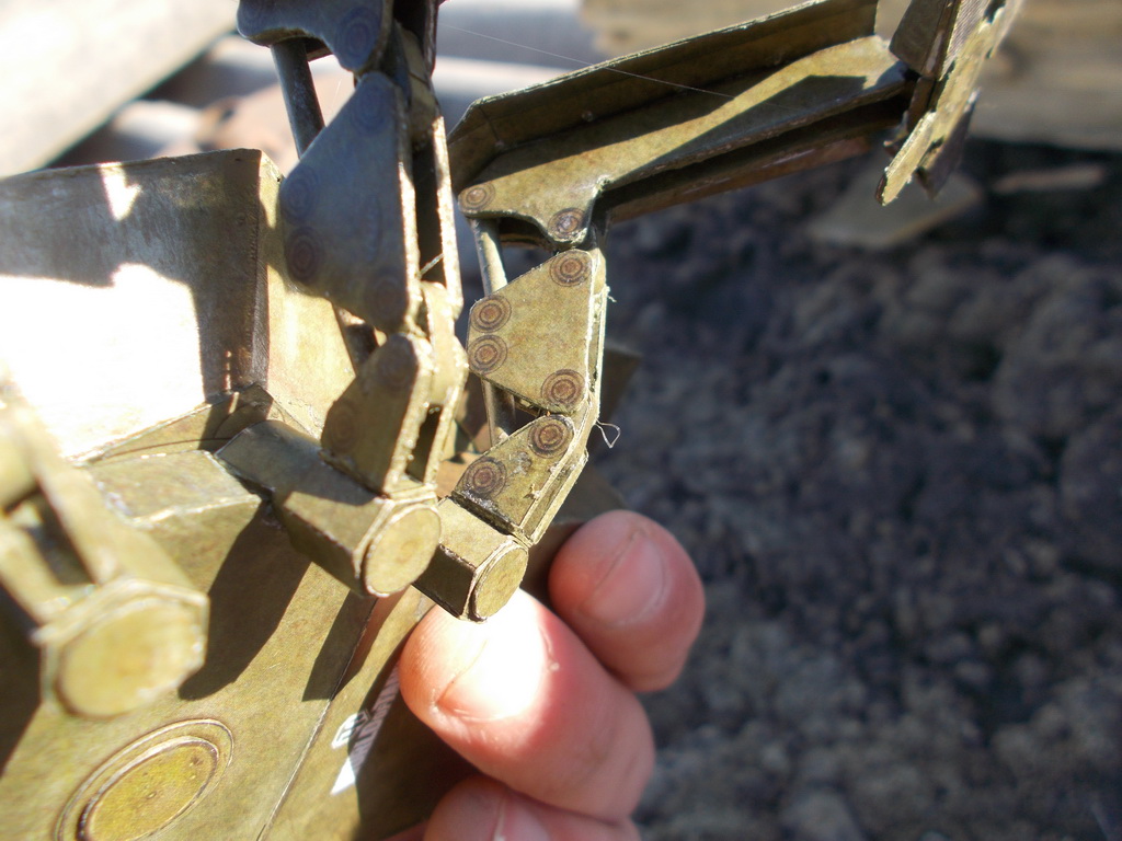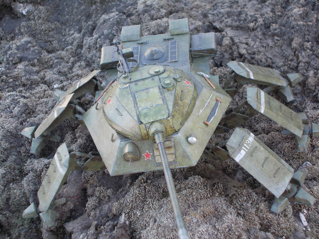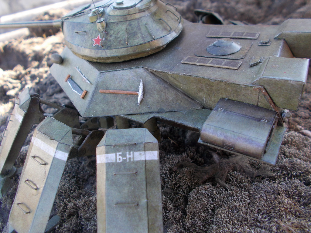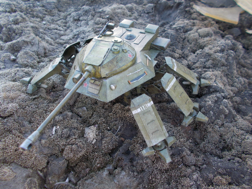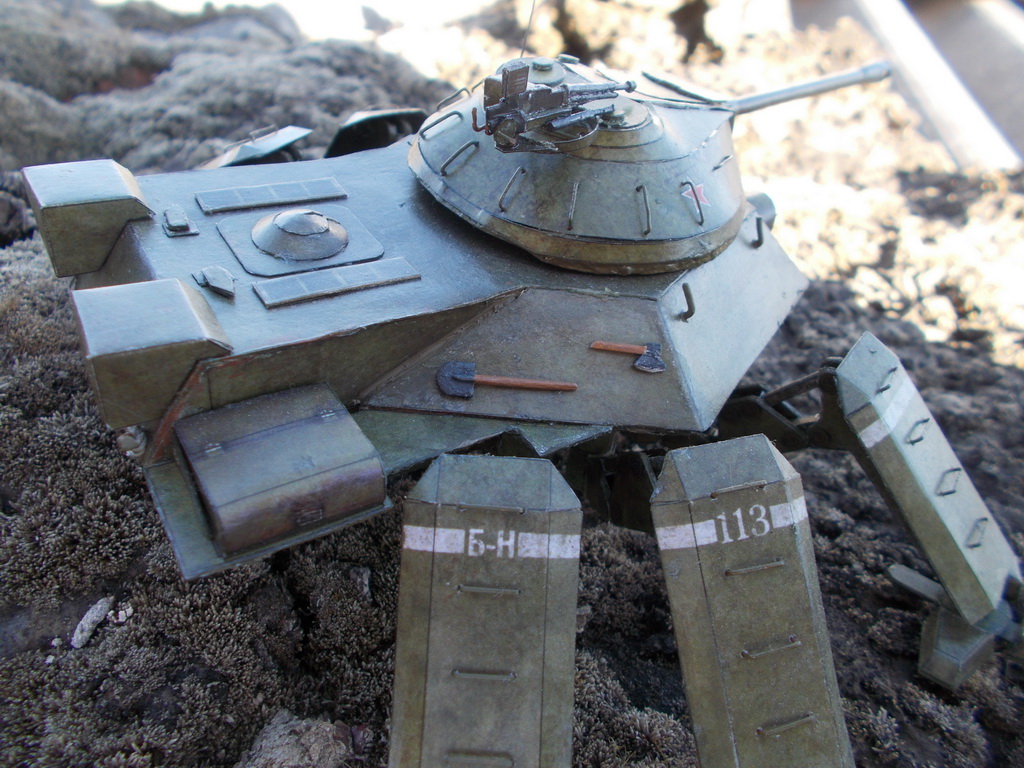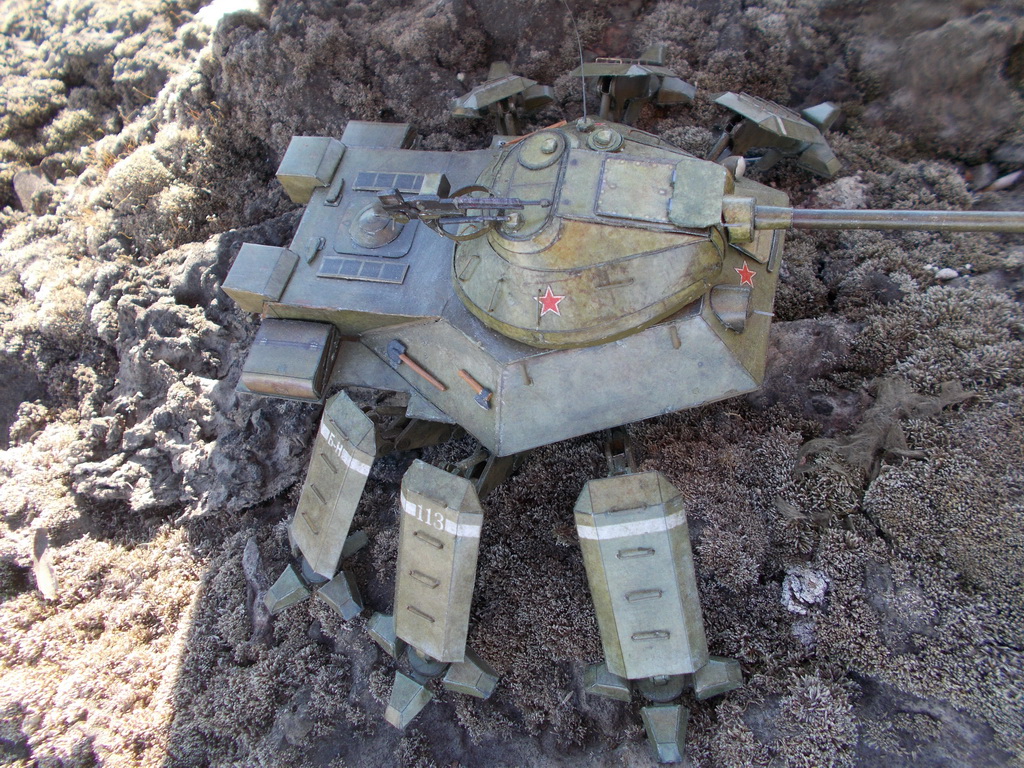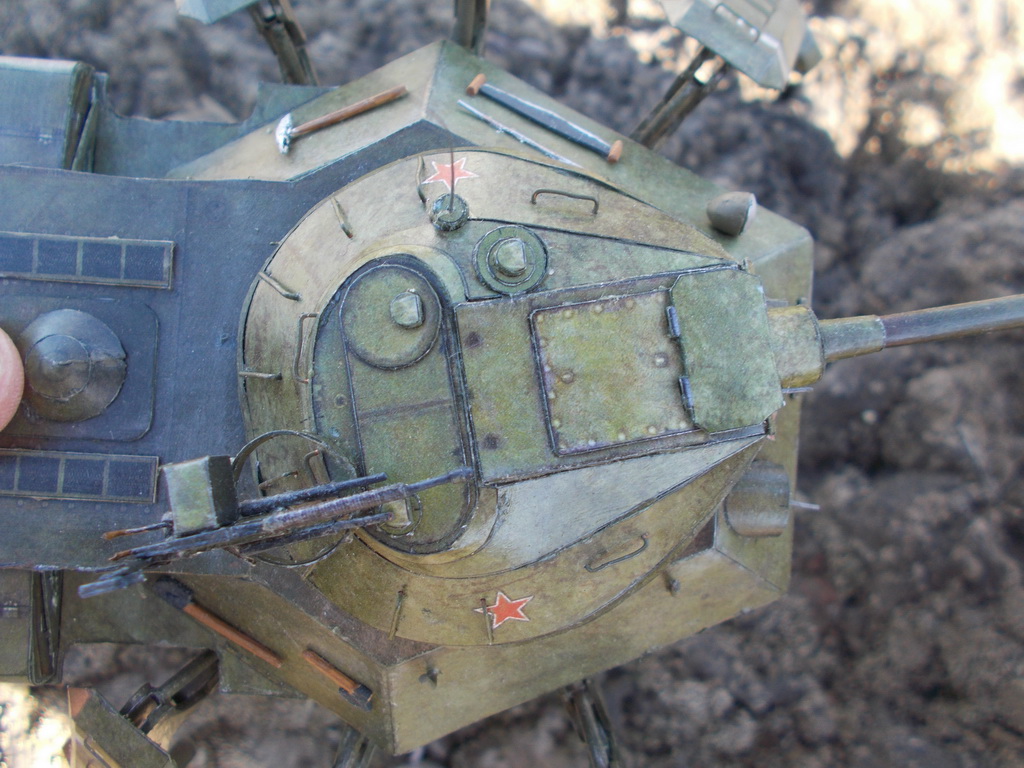 Доброго всем дня) выставляю на общее обозрение фотографии сборки советского шагателя) Основной каркас советую начинать собирать с нижних деталей: http://img849.imageshack.us/img849/511/xp4y.jpghttp://img819.imageshack.us/img819/3775/idll.jpg Инструменты, ящики, лючки: http://img845.imageshack.us/img845/6789/k8u4.jpghttp://img513.imageshack.us/img513/2102/9c42.jpghttp://img854.imageshack.us/img854/8004/2rzh.jpghttp://img713.imageshack.us/img713/4273/84gp.jpghttp://img69.imageshack.us/img69/6569/9yzz.jpghttp://img401.imageshack.us/img401/5564/8jtf.jpg Сборка башни была поначалу нелегкой задачей:http://img534.imageshack.us/img534/6017/9ush.jpghttp://img33.imageshack.us/img33/1615/3i83.jpghttp://img812.imageshack.us/img812/4466/ec7l.jpghttp://img23.imageshack.us/img23/2516/ek2b.jpg Башня отлично села на корпус), главное заранее сделать отверстия: http://img24.imageshack.us/img24/6625/6cnv.jpghttp://img541.imageshack.us/img541/9219/1a7e.jpghttp://img845.imageshack.us/img845/6862/h87b.jpg После склеивания башни я 2 дня, не спеша, вырезал и подкрашивал детали для ног, сама же сборка одной ноги из уже готовых деталей занимала приблизительно пол часа(параллельно я успевал смотреть фильм): http://img716.imageshack.us/img716/240/98pl.jpghttp://img31.imageshack.us/img31/9296/iyeb.jpghttp://img46.imageshack.us/img46/4205/hsud.jpghttp://img819.imageshack.us/img819/610/66gs.jpg