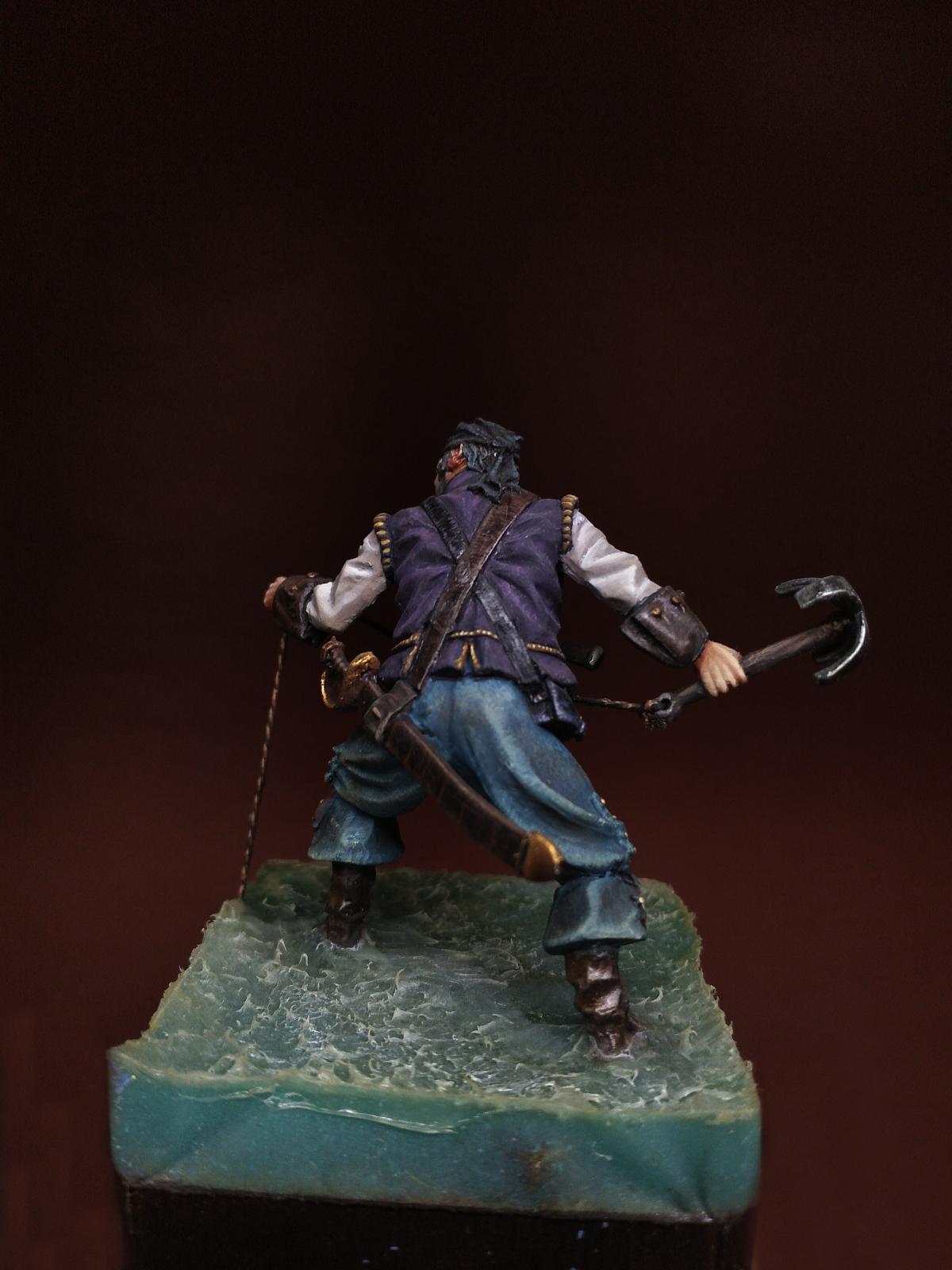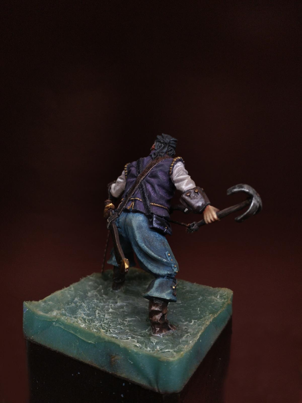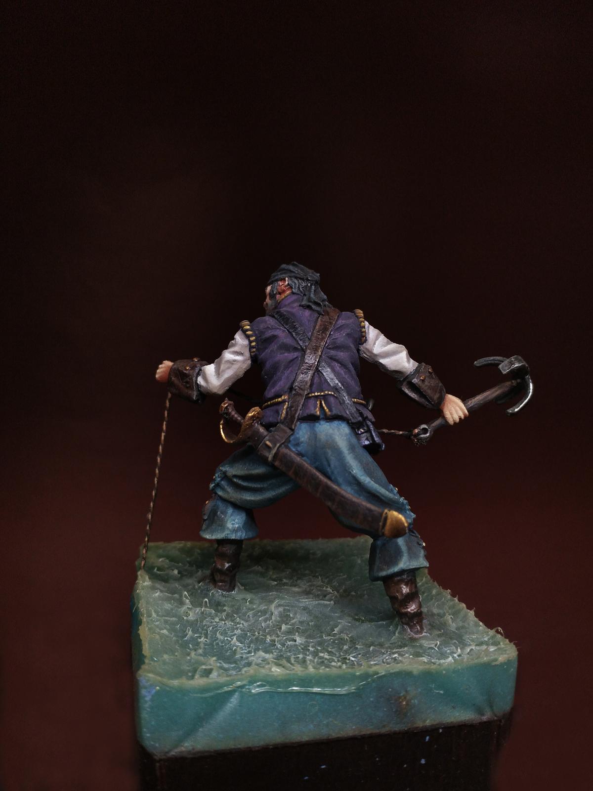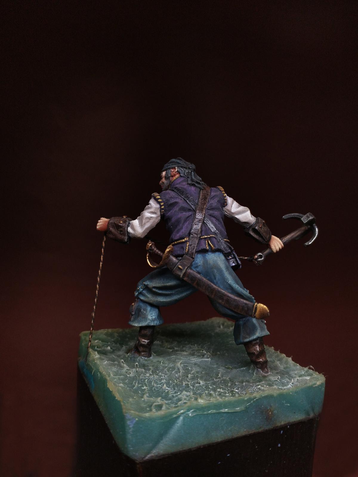 Yo-Ho-Ho! Представляю Вашему вниманию Английского Пирата с "кошкой" (на абордаж), в масштабе 54 мм, от студии - Новый век, отлитую в олове. С момента росписи прошло уже более трёх лет. Фигурка долго стояла в местном магазинчике, надеюсь как минимум радуя покупателей своим присутствием. Примерно пол года назад я её забрал домой и решил переснять, но...так как я был занят другими проектами, то только сегодня я вспомнил, что не демонстрировал фигурку ни на один ресурсе. Что ж, пора исправить сиё недоразумение. Инвентарь: Акрилы: Vallejo, Мастер Акрил от Звезды, Life Color. Масло: Сонет, Мастер Класс. Лаки: AK Interactive Ultra Matte Varnish, обычный матовый от АК, Сонет глянцевый.