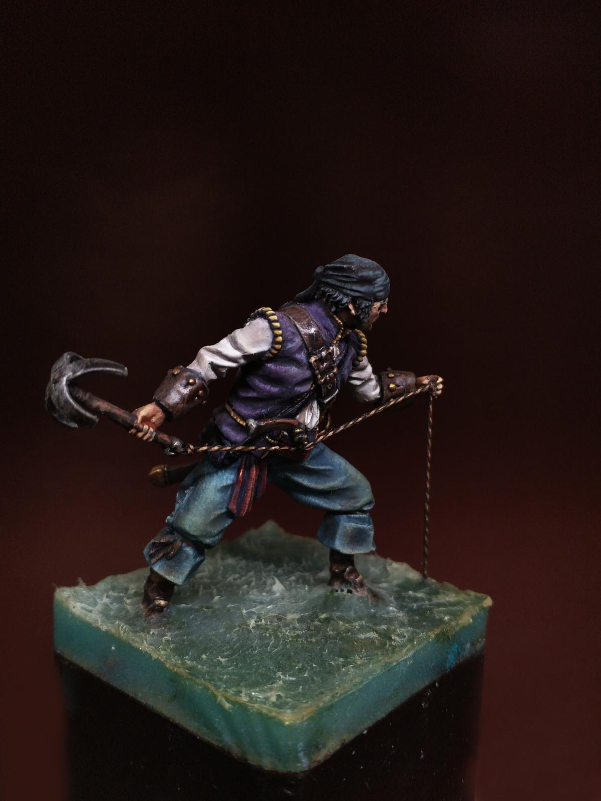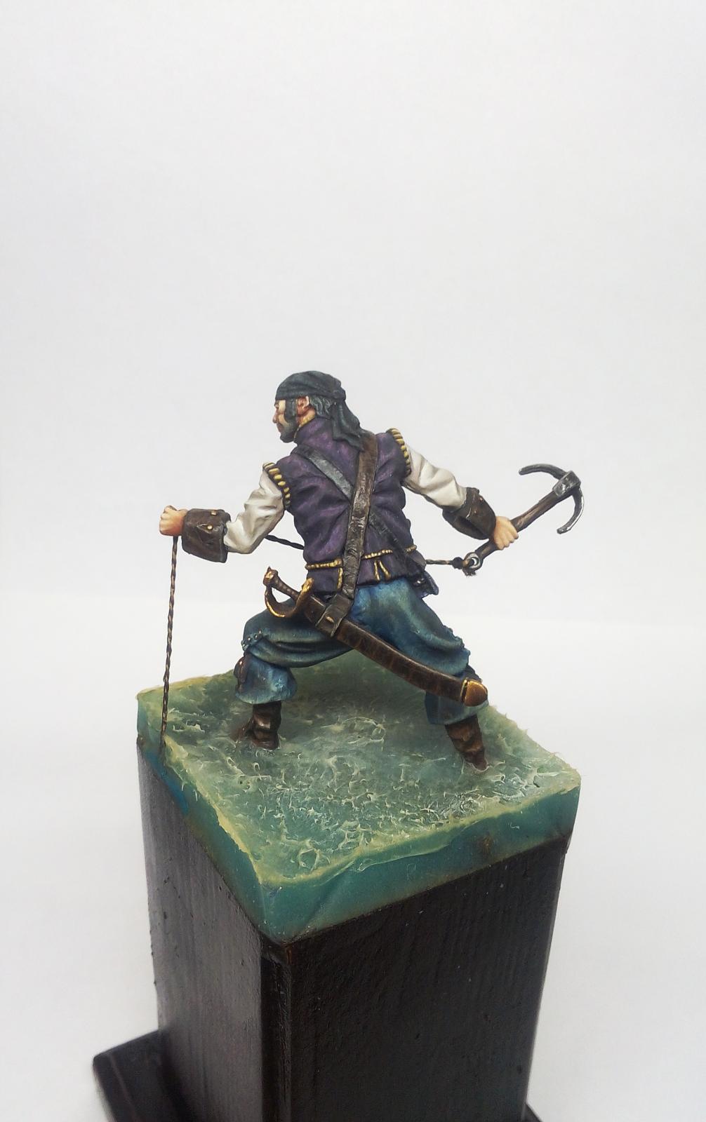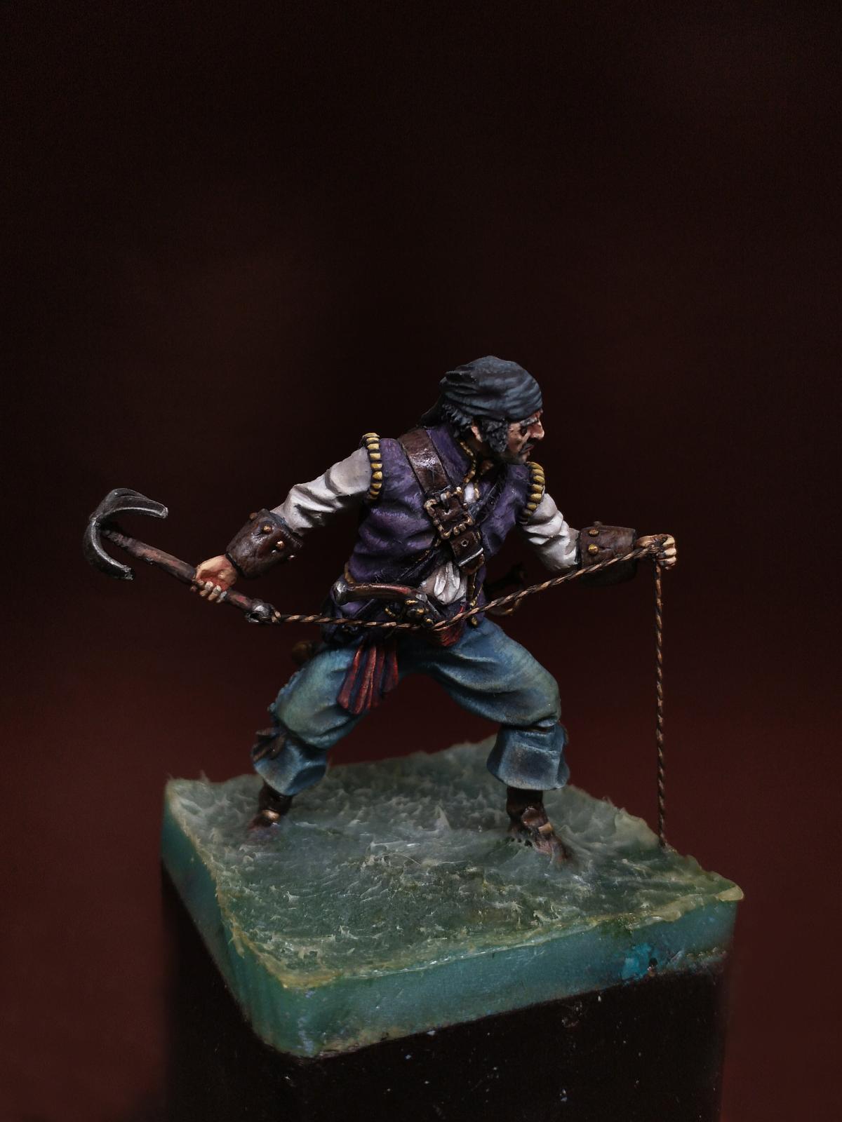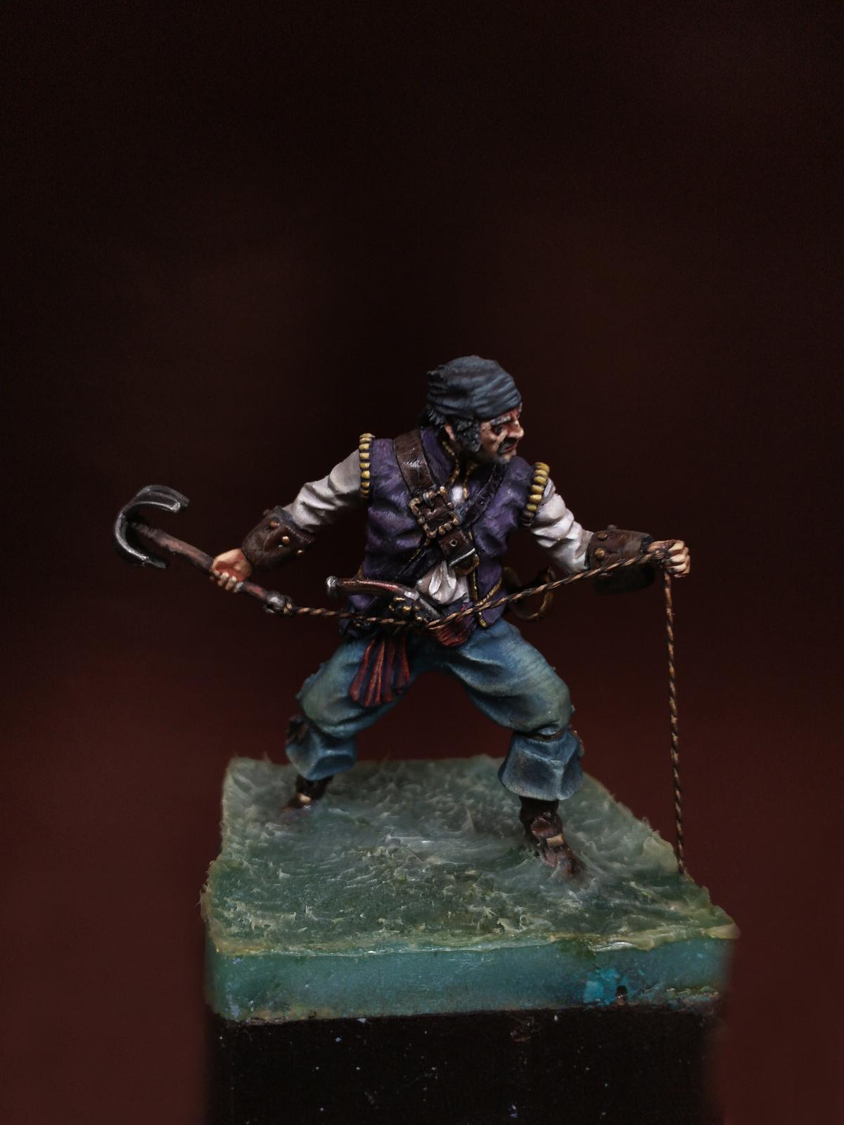 Yo-Ho-Ho! Представляю Вашему вниманию Английского Пирата с "кошкой" (на абордаж), в масштабе 54 мм, от студии - Новый век, отлитую в олове. С момента росписи прошло уже более трёх лет. Фигурка долго стояла в местном магазинчике, надеюсь как минимум радуя покупателей своим присутствием. Примерно пол года назад я её забрал домой и решил переснять, но...так как я был занят другими проектами, то только сегодня я вспомнил, что не демонстрировал фигурку ни на один ресурсе. Что ж, пора исправить сиё недоразумение. Инвентарь: Акрилы: Vallejo, Мастер Акрил от Звезды, Life Color. Масло: Сонет, Мастер Класс. Лаки: AK Interactive Ultra Matte Varnish, обычный матовый от АК, Сонет глянцевый.
