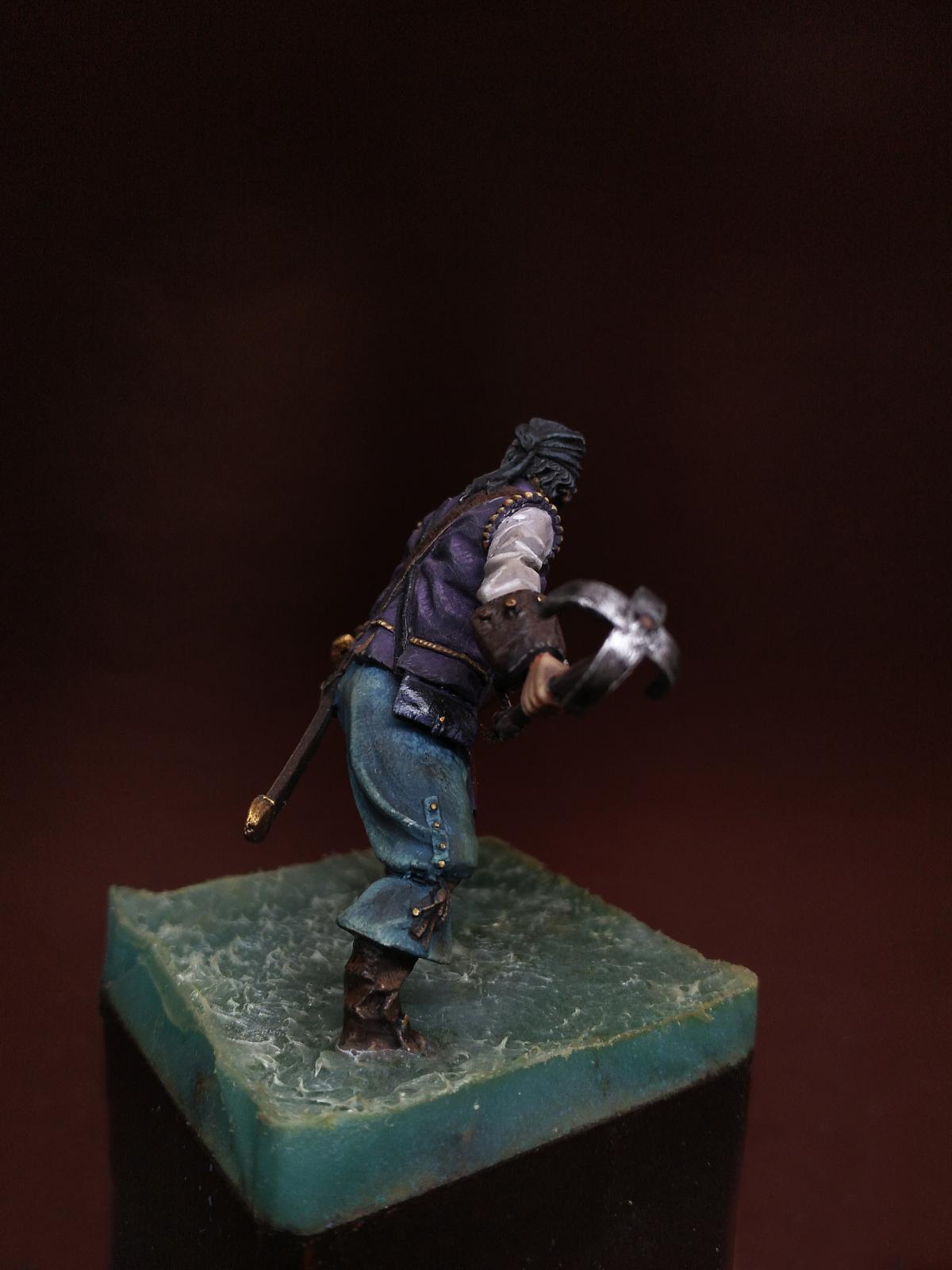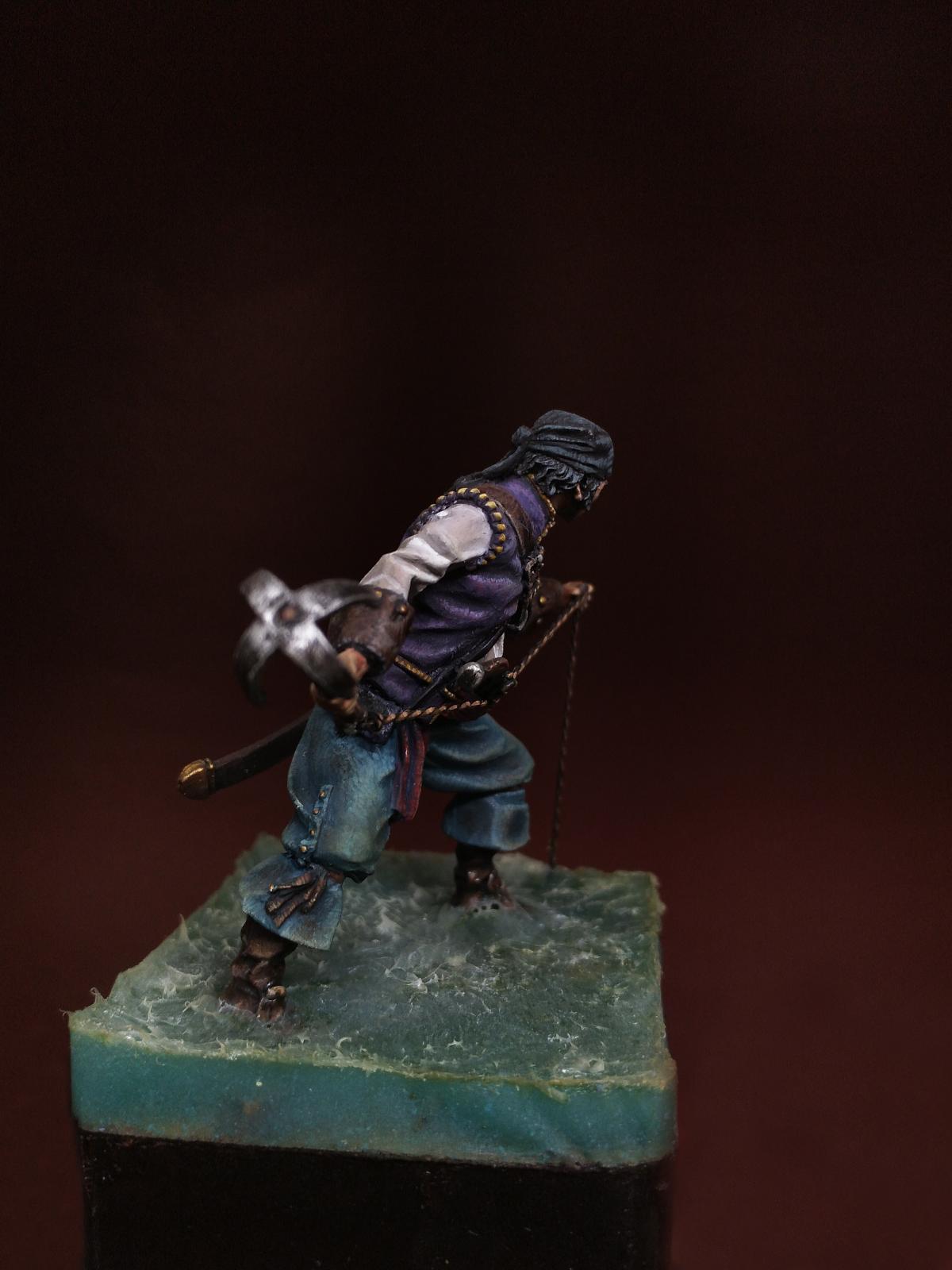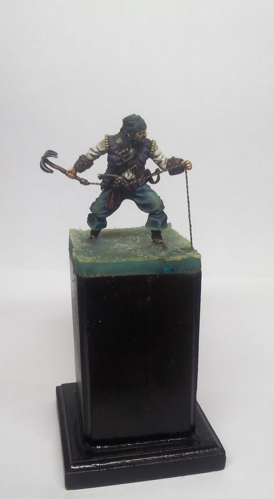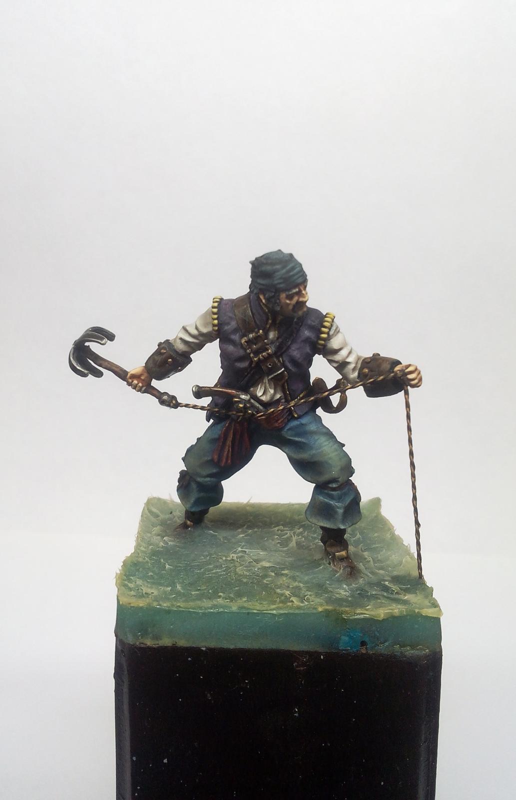 Yo-Ho-Ho! Представляю Вашему вниманию Английского Пирата с "кошкой" (на абордаж), в масштабе 54 мм, от студии - Новый век, отлитую в олове. С момента росписи прошло уже более трёх лет. Фигурка долго стояла в местном магазинчике, надеюсь как минимум радуя покупателей своим присутствием. Примерно пол года назад я её забрал домой и решил переснять, но...так как я был занят другими проектами, то только сегодня я вспомнил, что не демонстрировал фигурку ни на один ресурсе. Что ж, пора исправить сиё недоразумение. Инвентарь: Акрилы: Vallejo, Мастер Акрил от Звезды, Life Color. Масло: Сонет, Мастер Класс. Лаки: AK Interactive Ultra Matte Varnish, обычный матовый от АК, Сонет глянцевый.