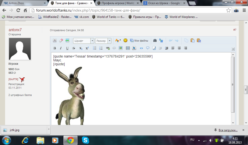 Все здрасте! Это моя 2-ая работа (и, имхо, она похуже 1-ой). Сразу бросаются в глаза 2 минуса - большая башня (имхо) и траки. Пожалуйста, критикуйте и указывайте на недостатки. Мне это очень важно. Так же короткий ствол, но что сделать, лист не позволяет. Знаю, что не художник и не буду им. Моя первая работа - M24 Chaffee http://forum.worldof...40#entry9588840 Моя третья работа (ПРОВАЛ) - Малыши http://forum.worldof...8/#entry9593192UPD. Скрин перезалил. Причина - черная "рамка".