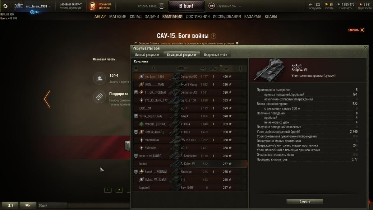 Спс разработчикам за патч,вот честно все, в том числе и Я,горазды только на критику ВГ,а никогда не видел благодарности! Так вот спс,и это первый патч когда Я сорал Джек Пот! В ангаре т 10,об 263, и об 430, при этом на танке ис 60к опыта,на т 10 200к опыта ис7 прокачан и куплен! В следующем обновлении хочется видеть ап таких танков как кв5,ис6 чуток брони фцму и штук 20 новых карт включая КОМАРИН,СЕВЕРОГОРСК,ХРЕБЕТ ДРАКОНА С ЕЕ ИЗУМИТЕЛЬНЫМИ ТРАМПЛИНАМИ! СТАЛИНГРАД, и больше весенне -летних карт чем осенних! У меня все всем спс !